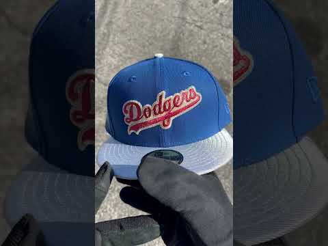 Los Angeles Dodgers 50th Anniversary New Era 59Fifty Fitted Hat in Song Bird Blue, Metallic Silver and Kelly Green Under Brim.
