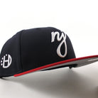 NJ Halftime Patch New Era 59Fifty Fitted Hat in Navy, Scarlet Red & Gray Under Brim.