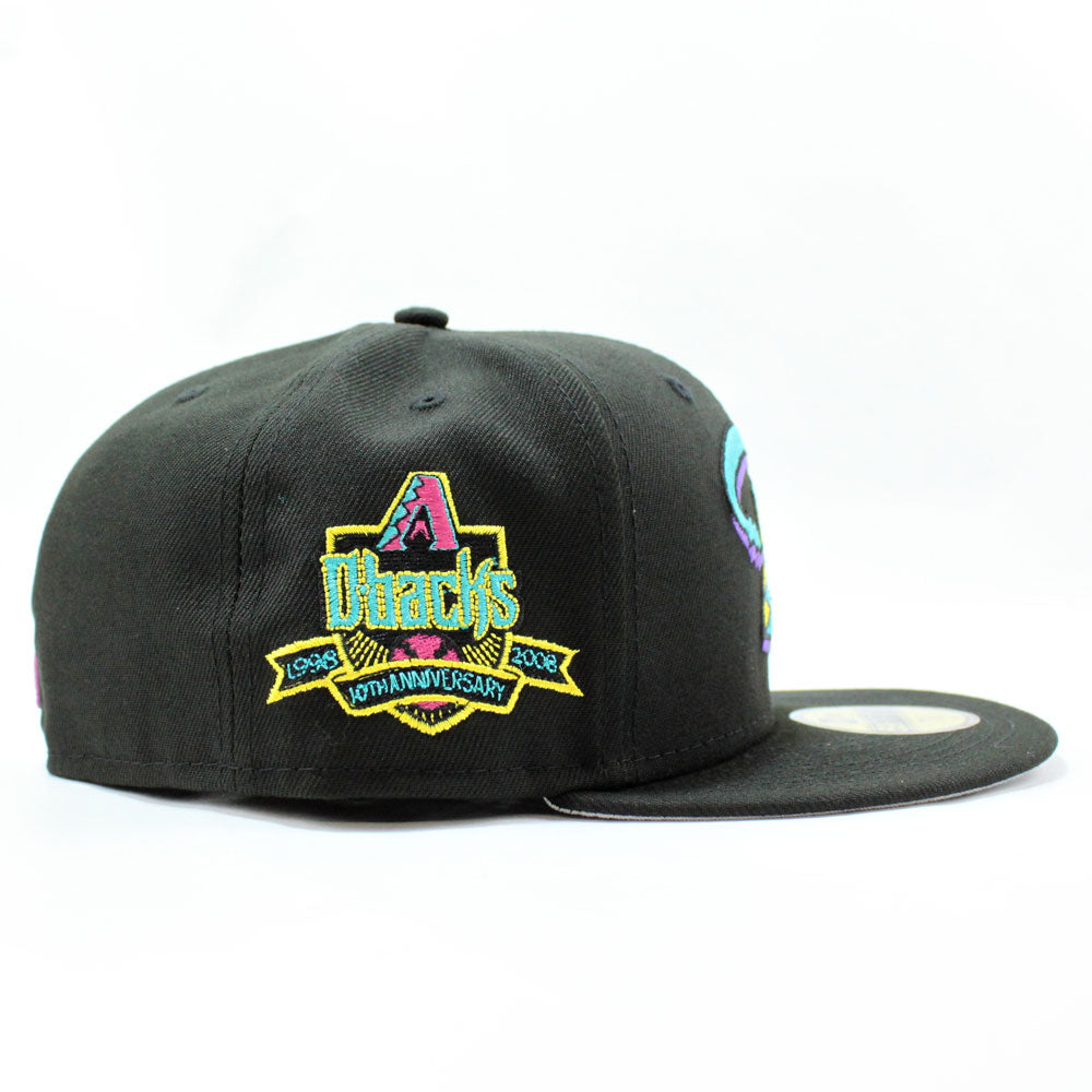 Arizona Diamondbacks 10TH Anniversary New Era 59Fifty Fitted Hat in Black & Grey Under Brim.