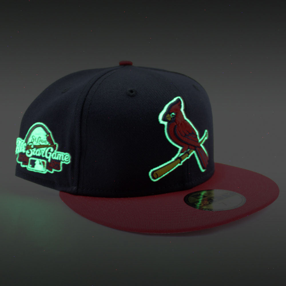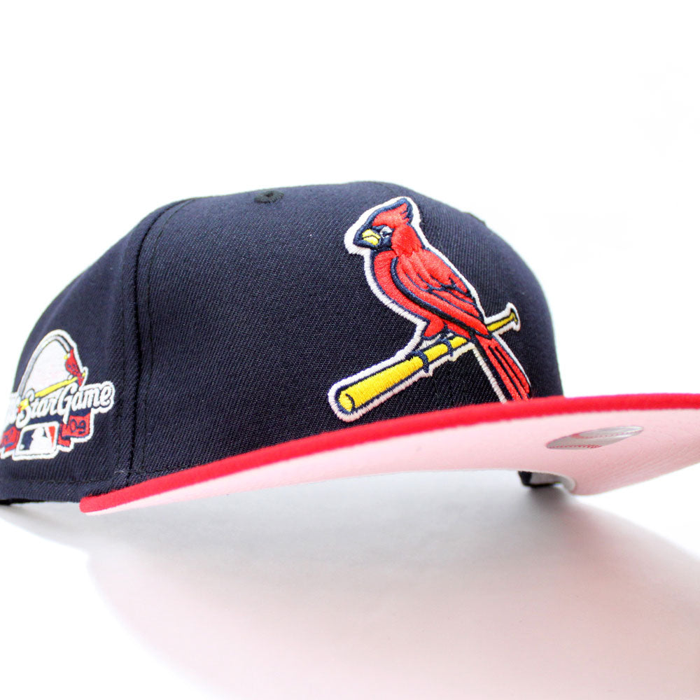 St Louis Cardinals 2009 All-Star Game New Era 59Fifty Fitted Hat in Navy, Red and PINK Under Brim. Logo: Glow in the Dark