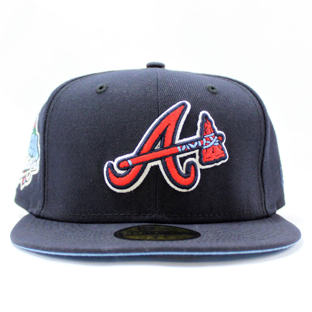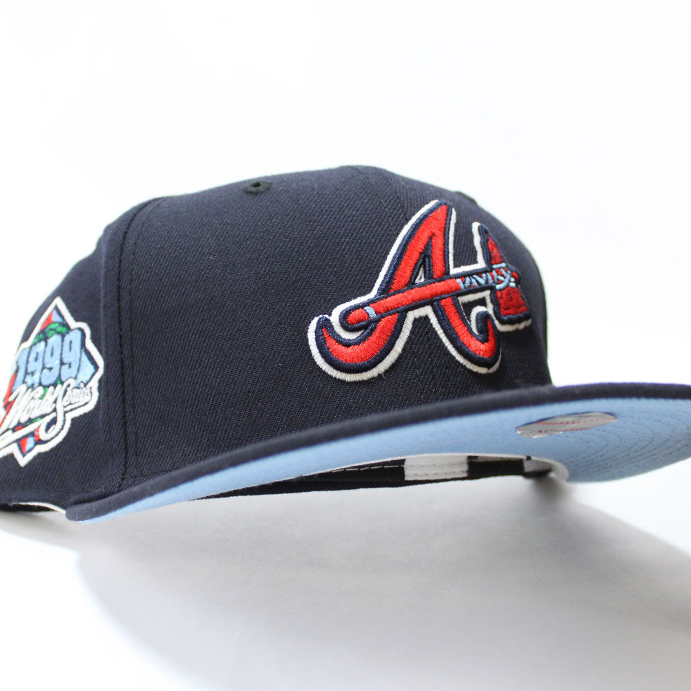 Atlanta Braves 1999 World Series New Era 59Fifty Fitted Hat in Navy with a Blue Under Brim. Logo: Glow in the Dark