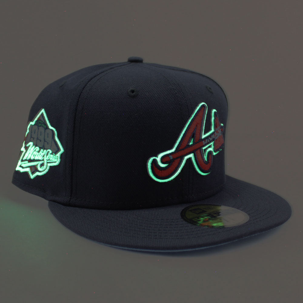 Atlanta Braves 1999 World Series New Era 59Fifty Fitted Hat (Glow in the Dark Logo Navy Blue Under Brim)