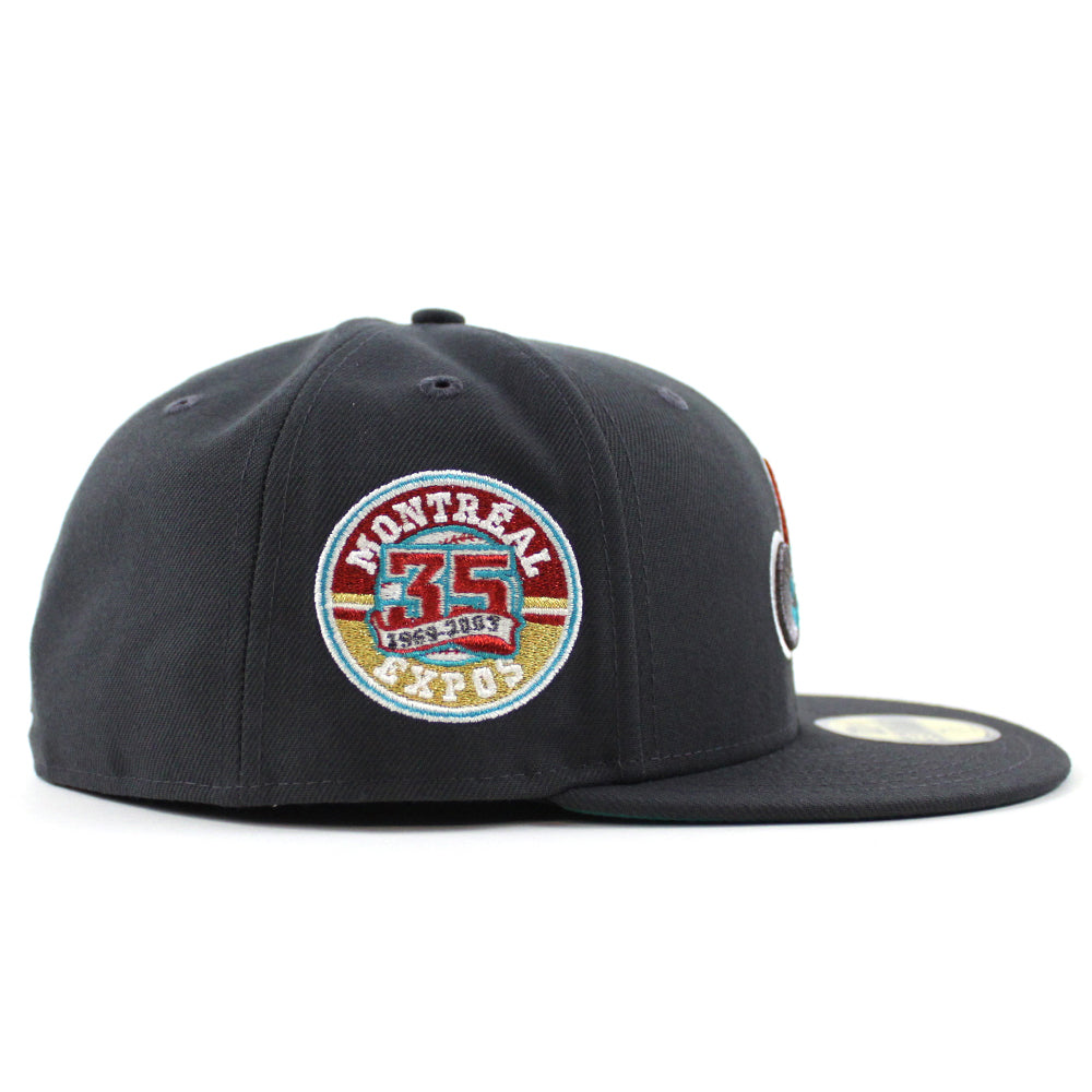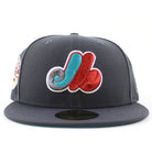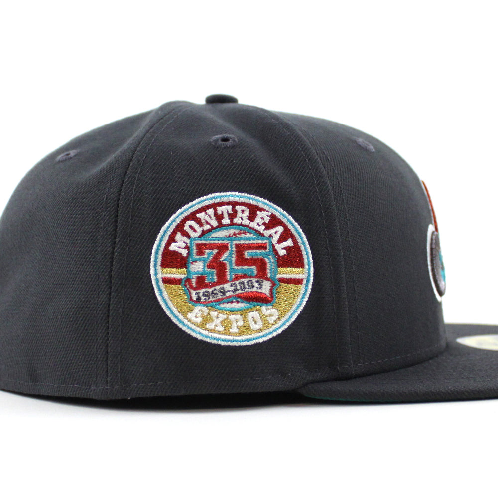 Montreal Expos 35th Anniversary New Era Fitted 59Fifty Hat (Dark Graphite Gray Aqua Under brim)