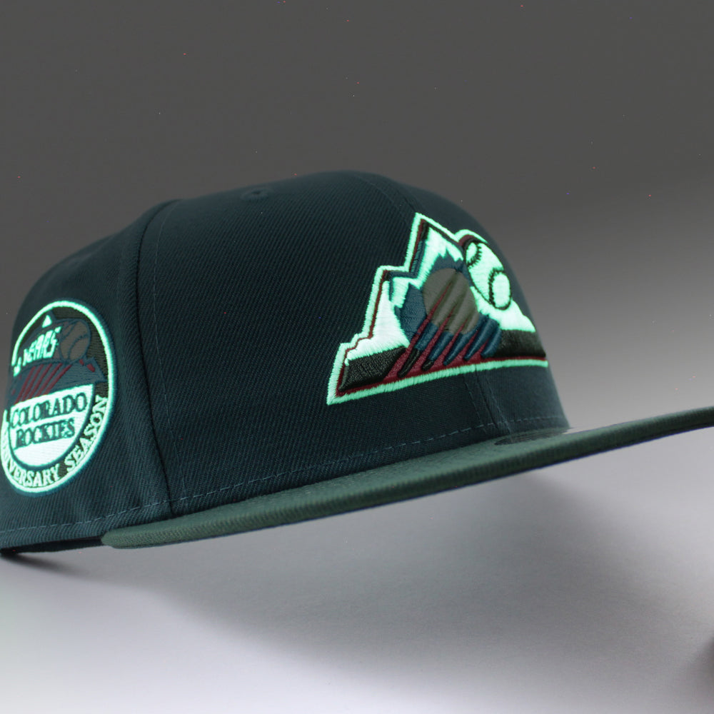 Colorado Rockies 10th Anniversary New Era 59Fifty Fitted Hat (GITD Aqua Pine Green Green Under Brim)
