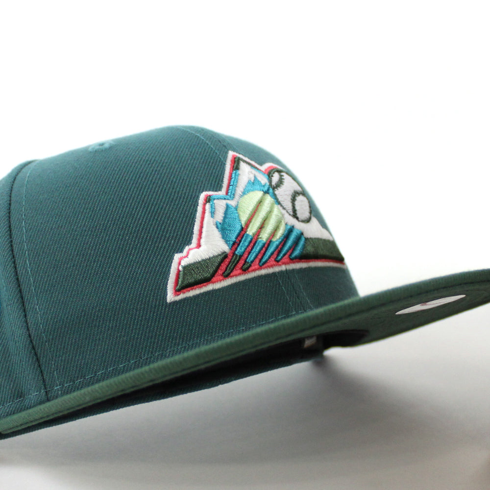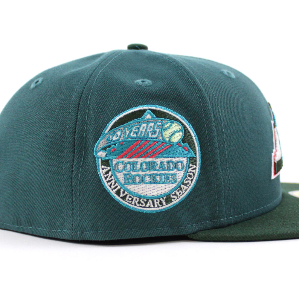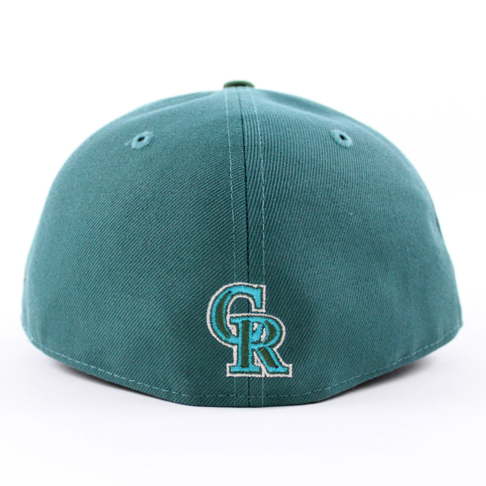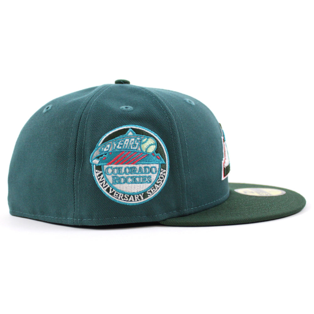Colorado Rockies 10th Anniversary New Era 59Fifty Fitted Hat in Aqua Pine Green with Pine Green Under Brim.
