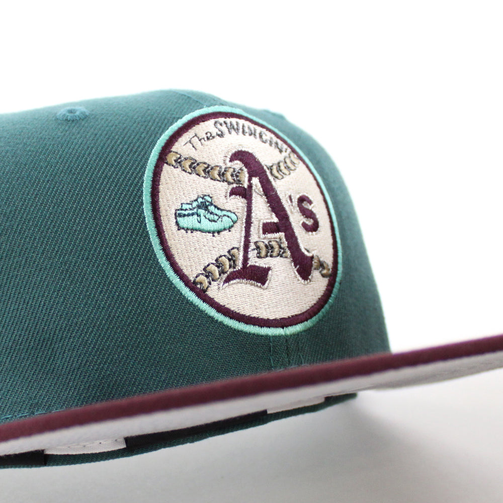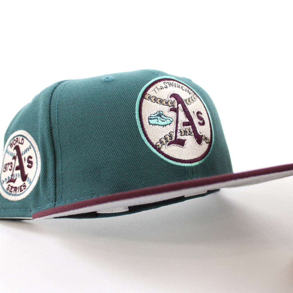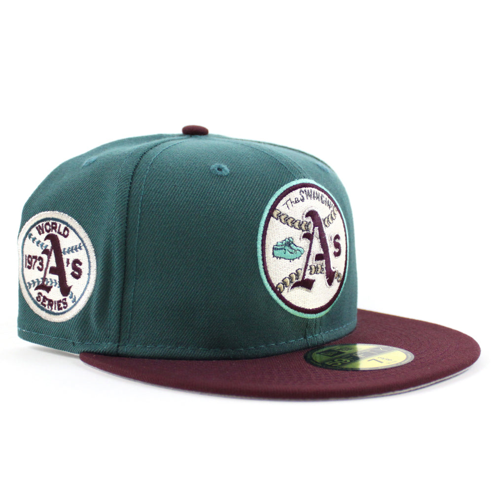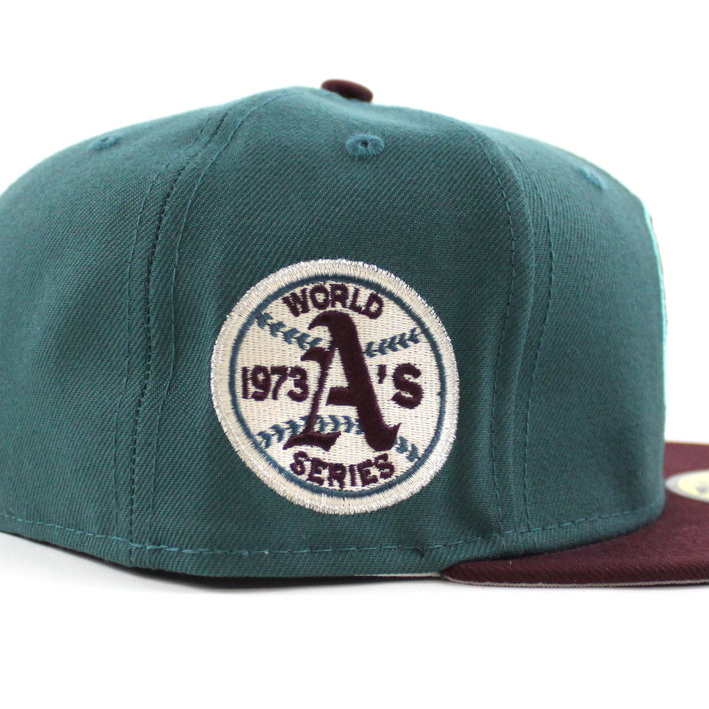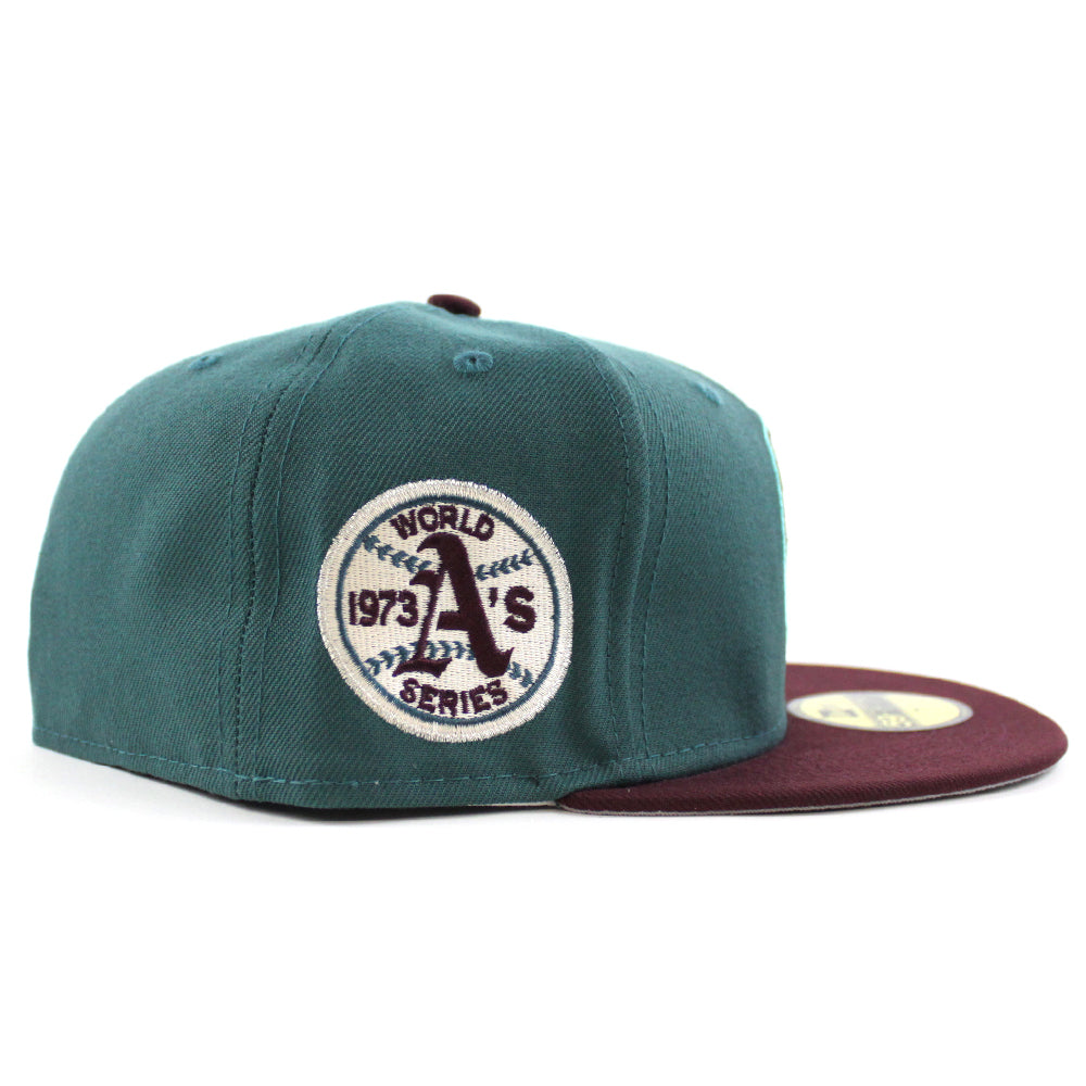 Oakland Athletics 1973 World Series New Era 59Fifty Fitted Hat in M.Green, Maroon & Gray Under Brim.