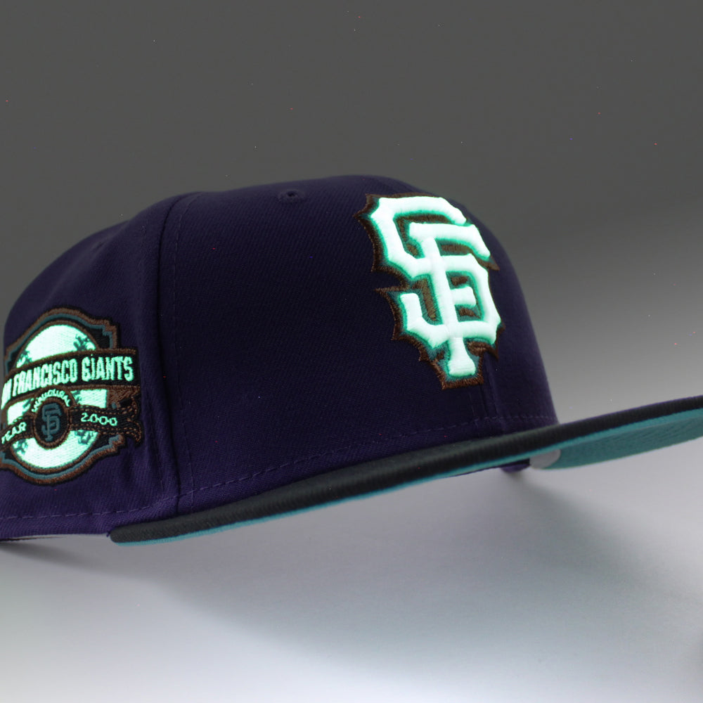 San Francisco Giants INAUGURAL YEAR 2000 New Era 59Fifty Fitted Hat (GITD Purple Black Aqua Under Brim)