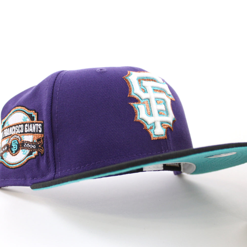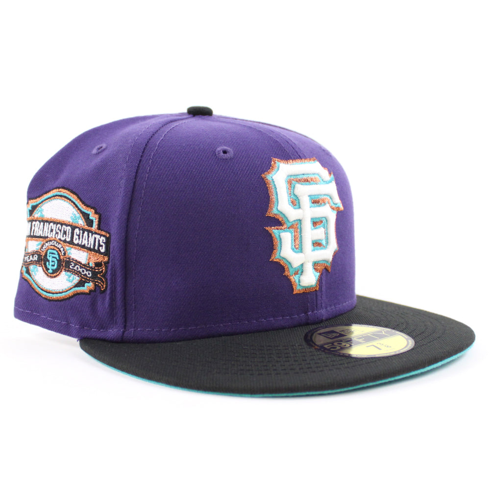 San Francisco Giants INAUGURAL YEAR 2000 New Era 59Fifty Fitted Hat in Purple, Black & Aqua Under Brim.