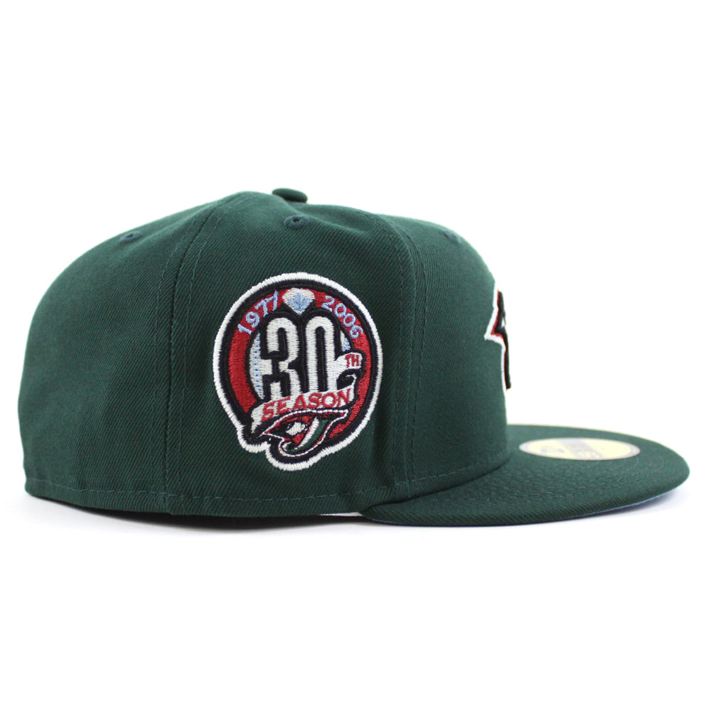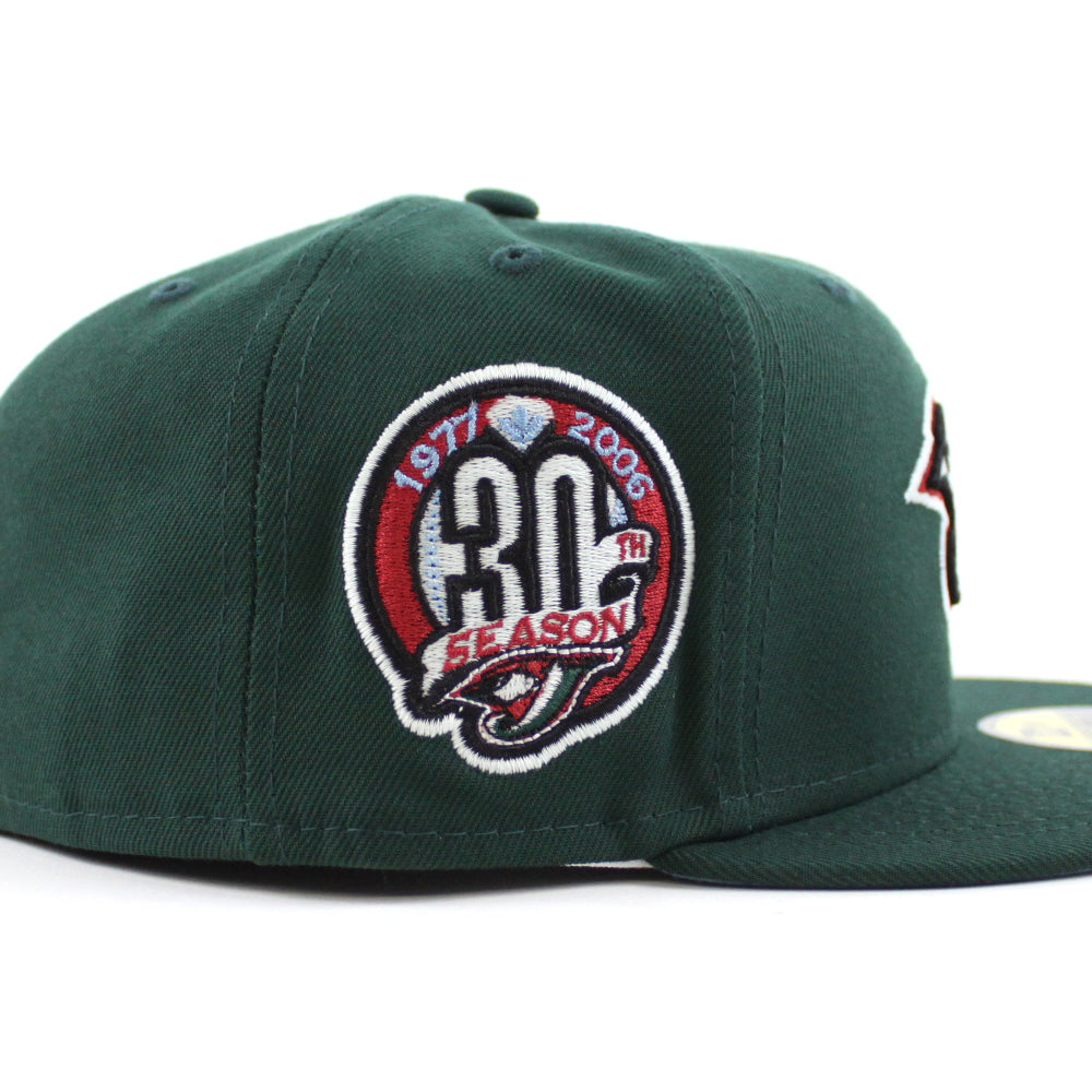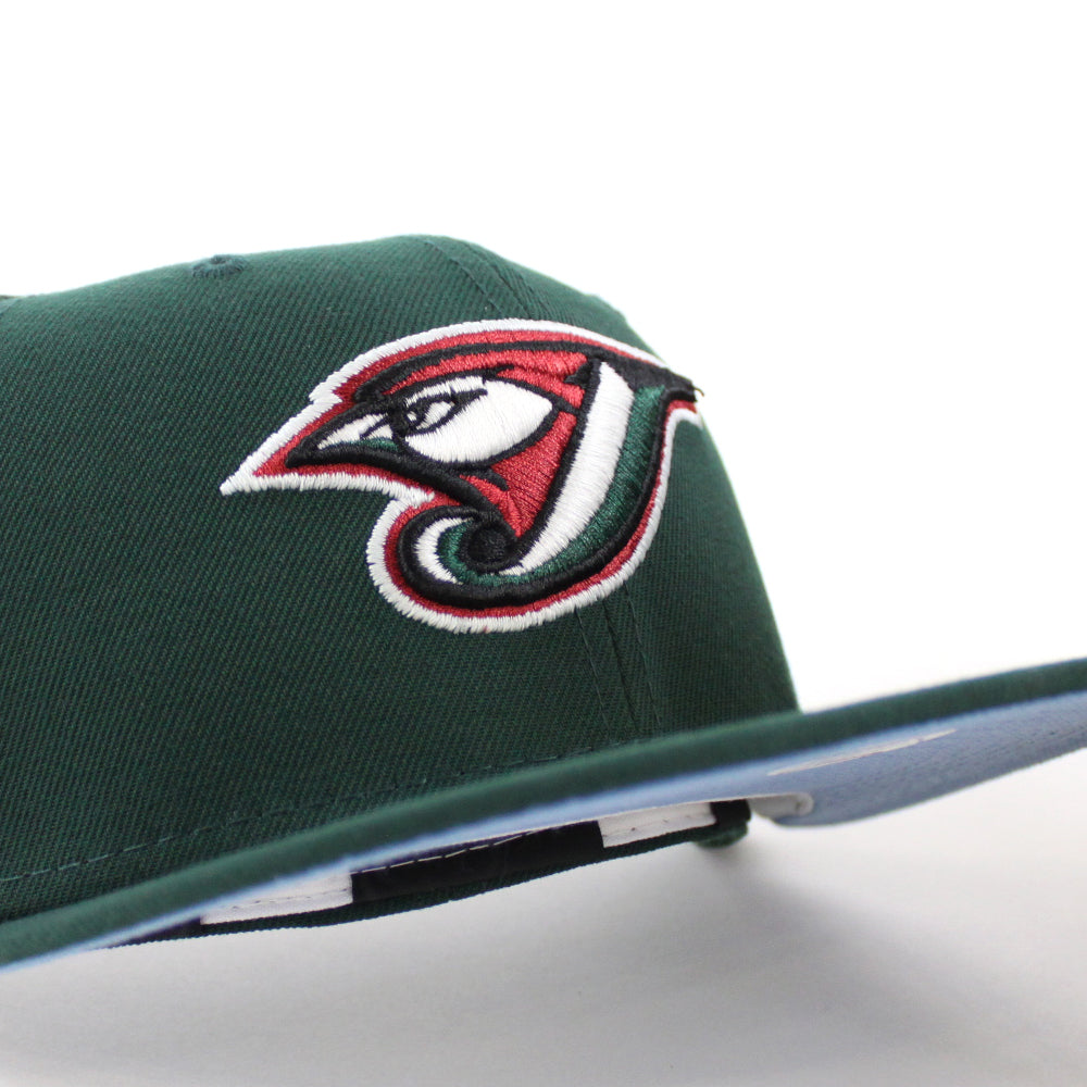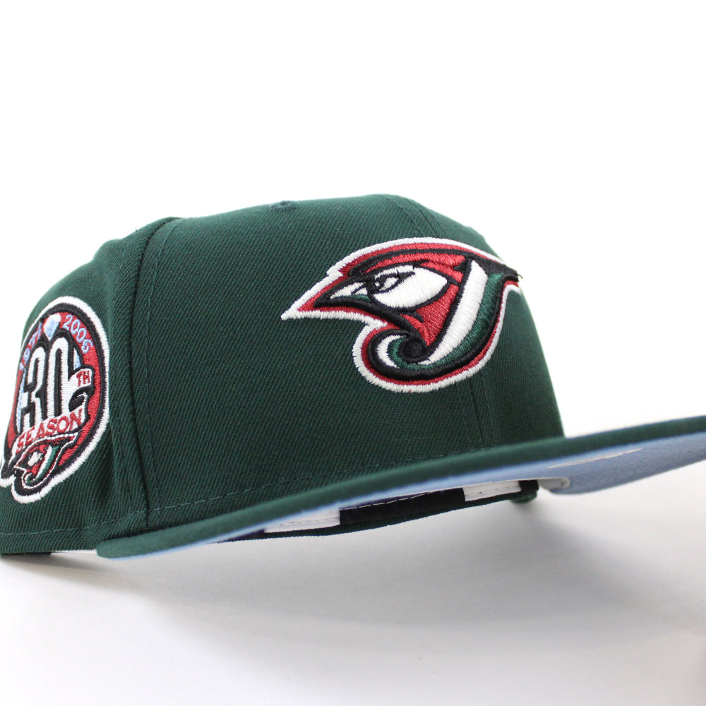 Toronto Blue Jays 30th Anniversary New Era 59Fifty Fitted in Dark Green and Sky Blue Under Brim.