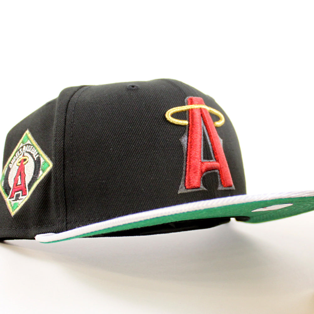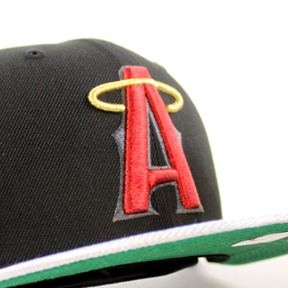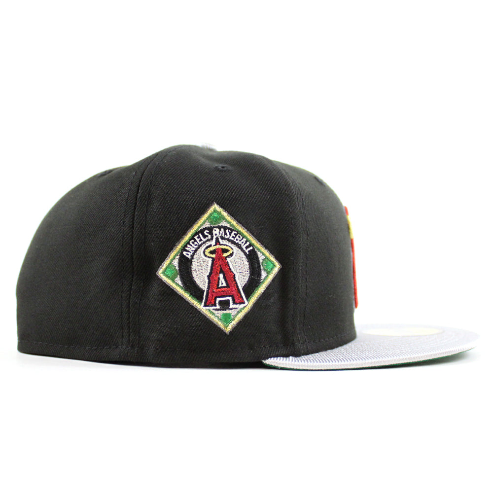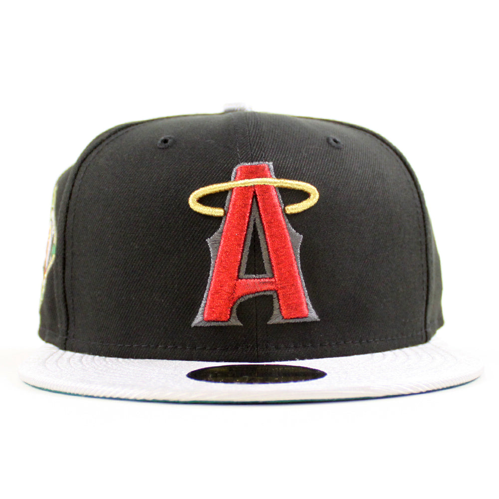 Anaheim Angels Angel Patch New Era 59Fifty Fitted Cap in Black, Silver and Green Under Brim.