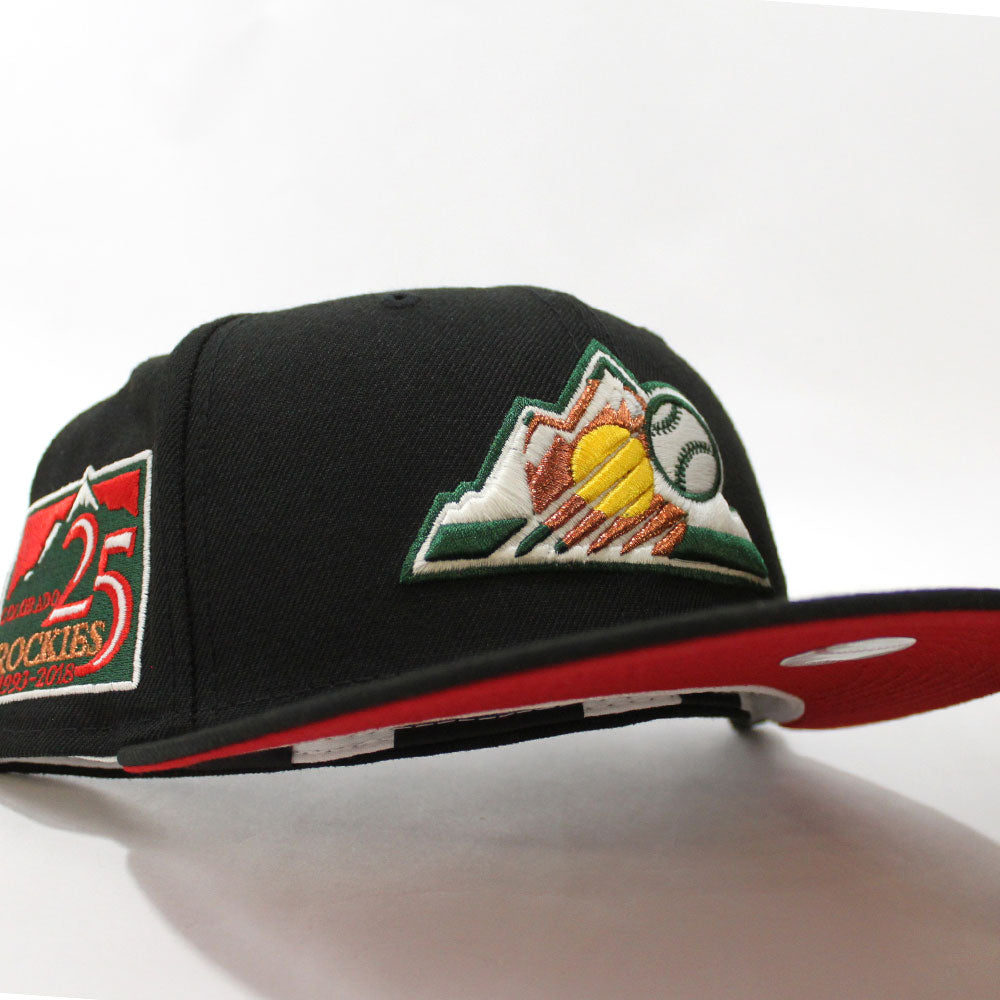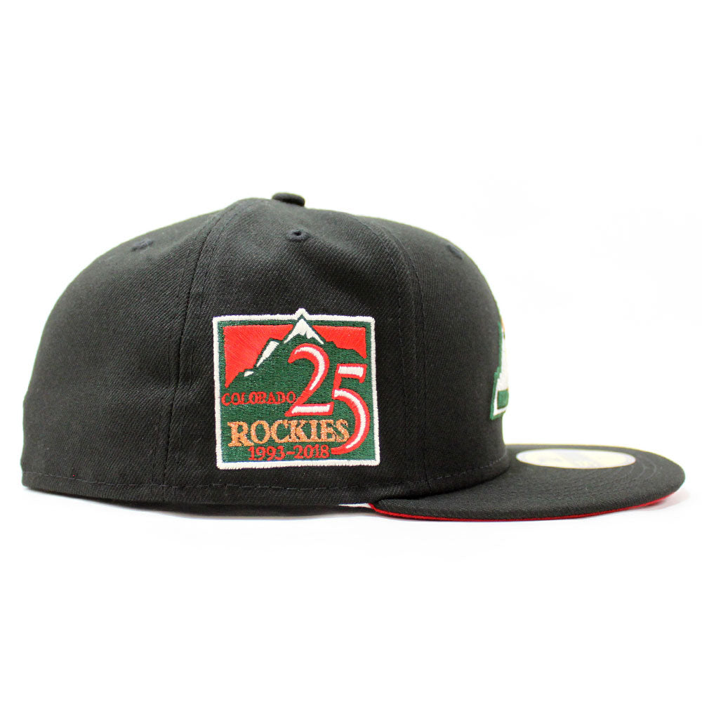 Colorado Rockies 25th Anniversary New Era 59Fifty Fitted Hat in Black, Glow in the Dark, Green, Copper, Yellow & Red Under Brim.