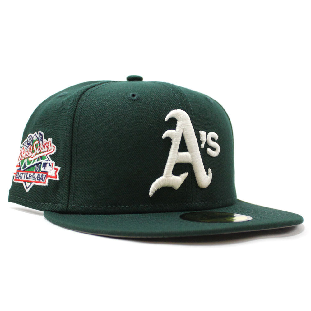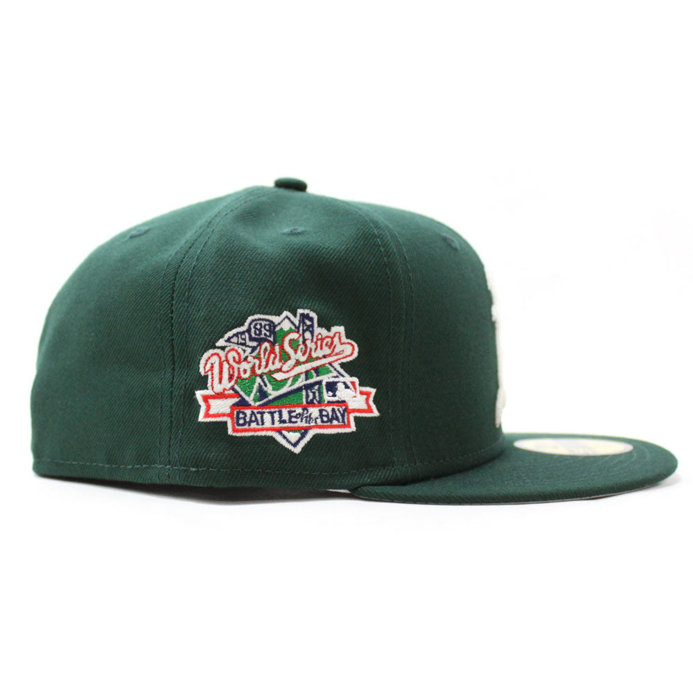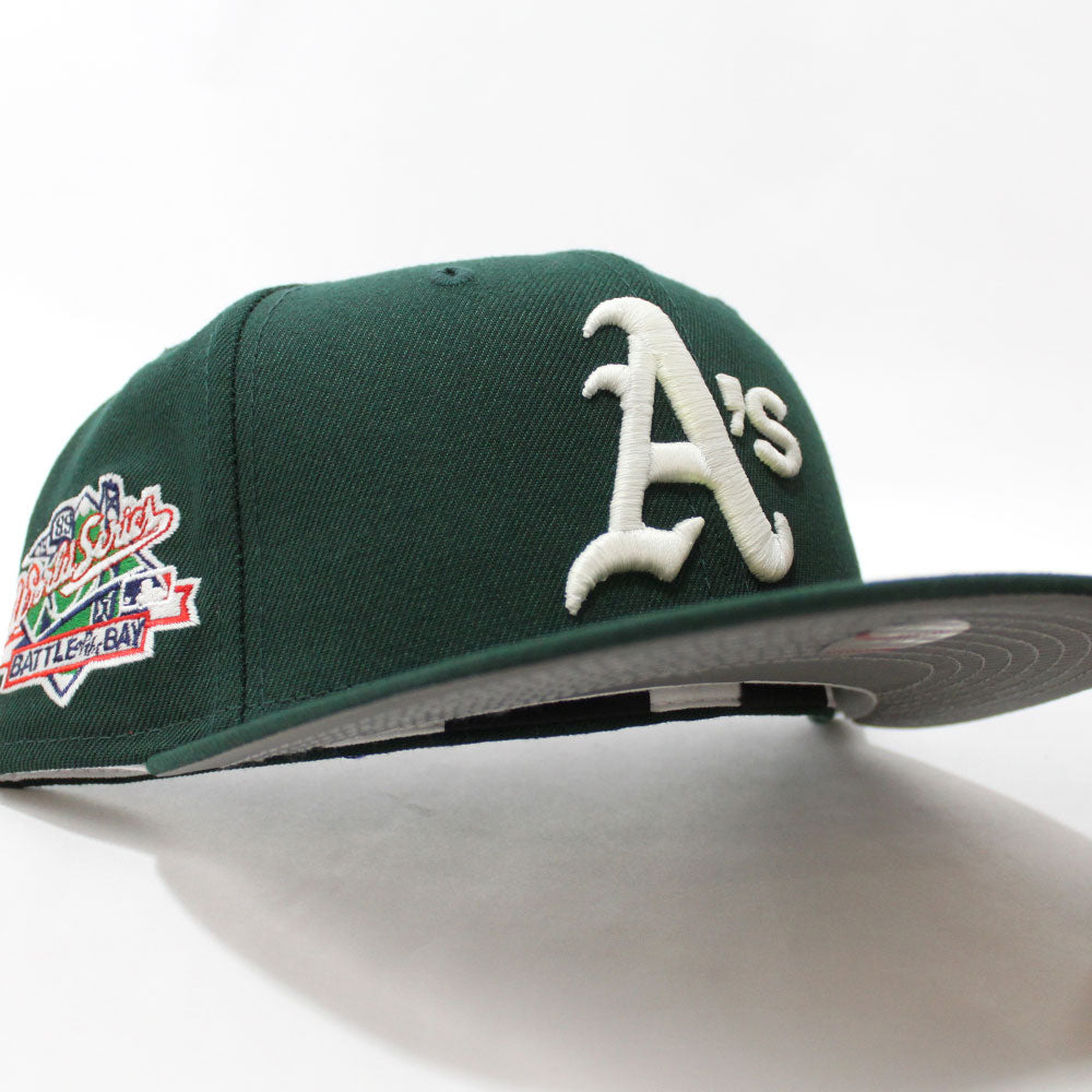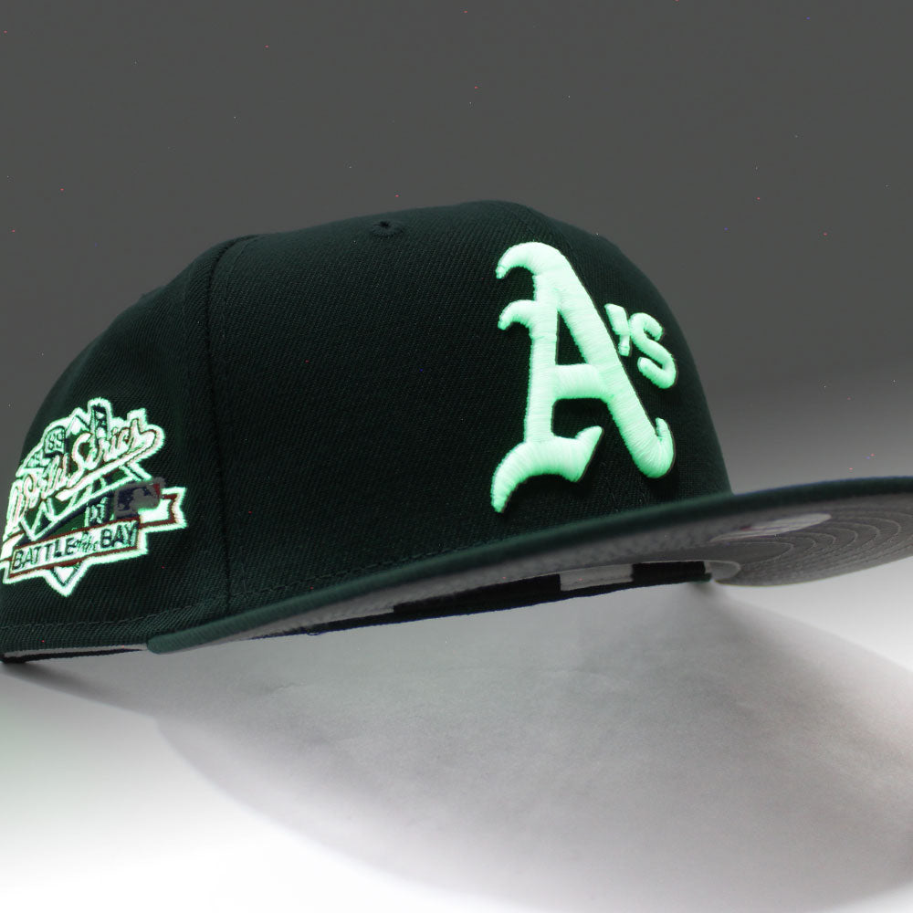 Oakland Athletics 1989 Battle of the Bay World Series New Era 59Fifty Fitted Hat in Dark Green, Glow in the Dark with 3M Reflective Gray Under Brim.