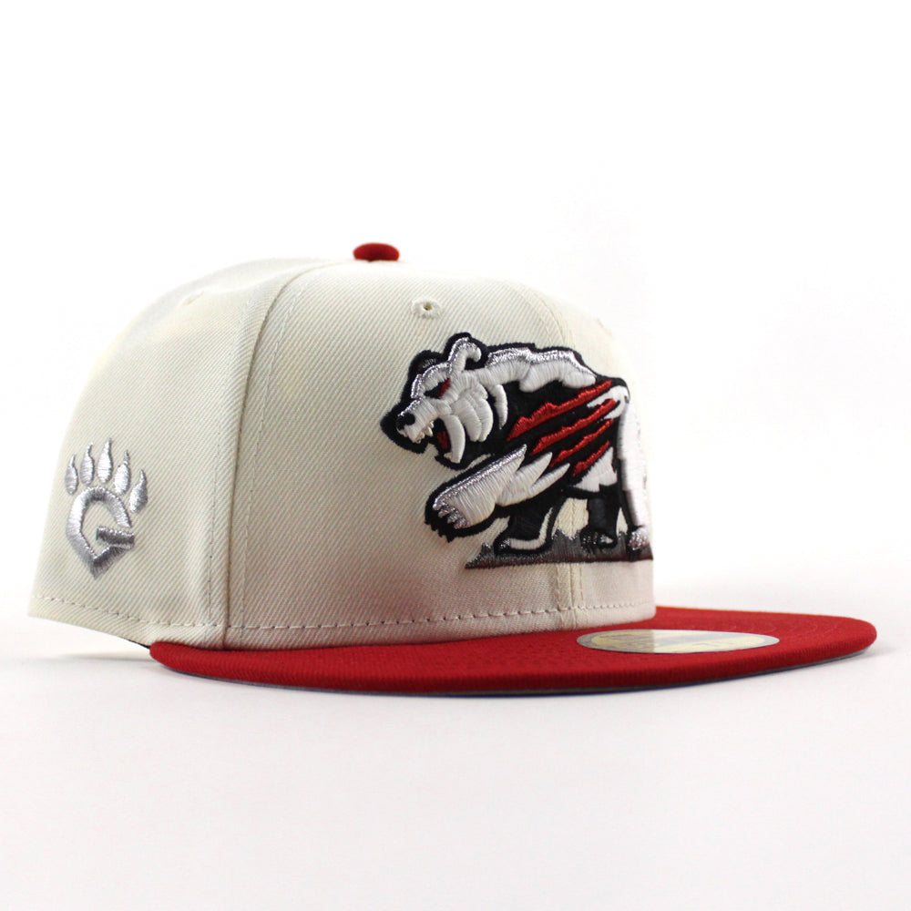 Fresno Grizzlies Grizzlies Patch New Era 59Fifty Fitted Cap in Chrome White, Scarlet Red and Gray Under Brim.