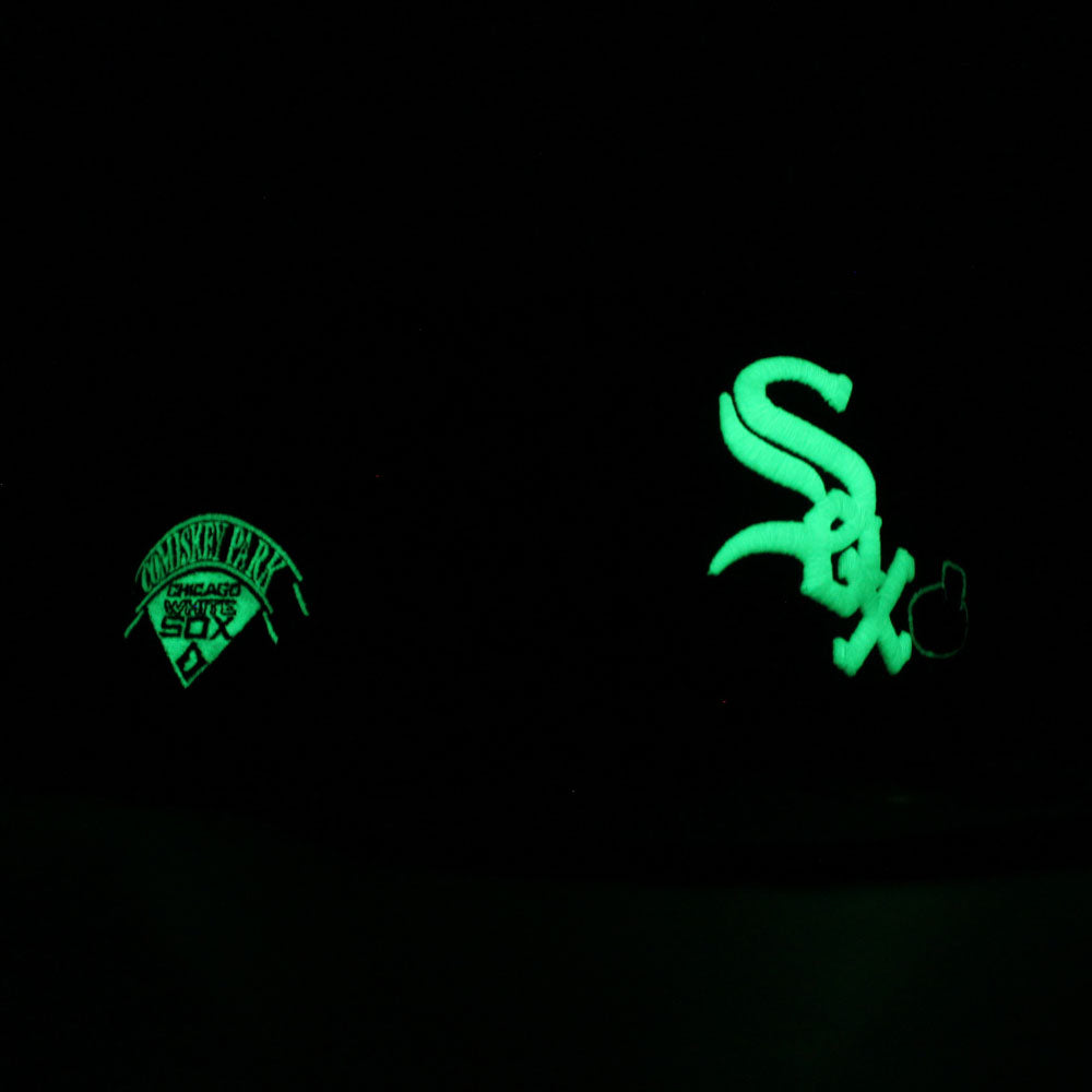 Chicago White Sox Deep Dish Comiskey Park Patch New Era Fitted 59Fifty Hat (Glow in the Dark Logo Green Red Under Brim)