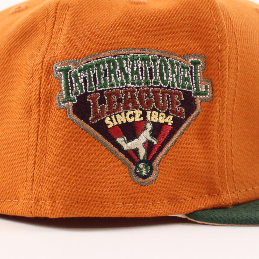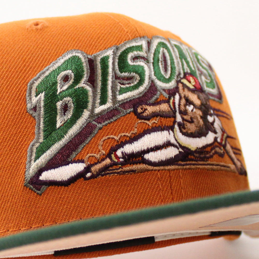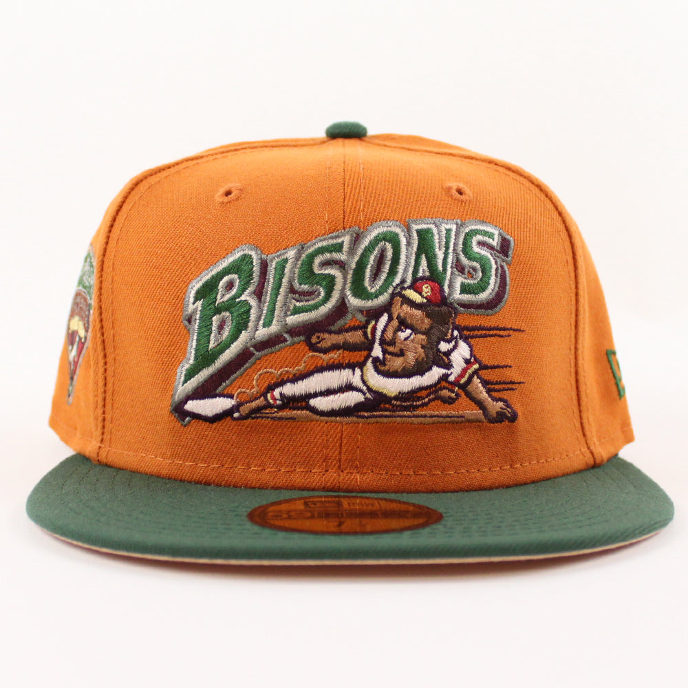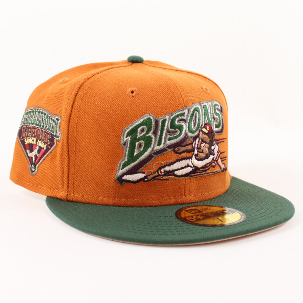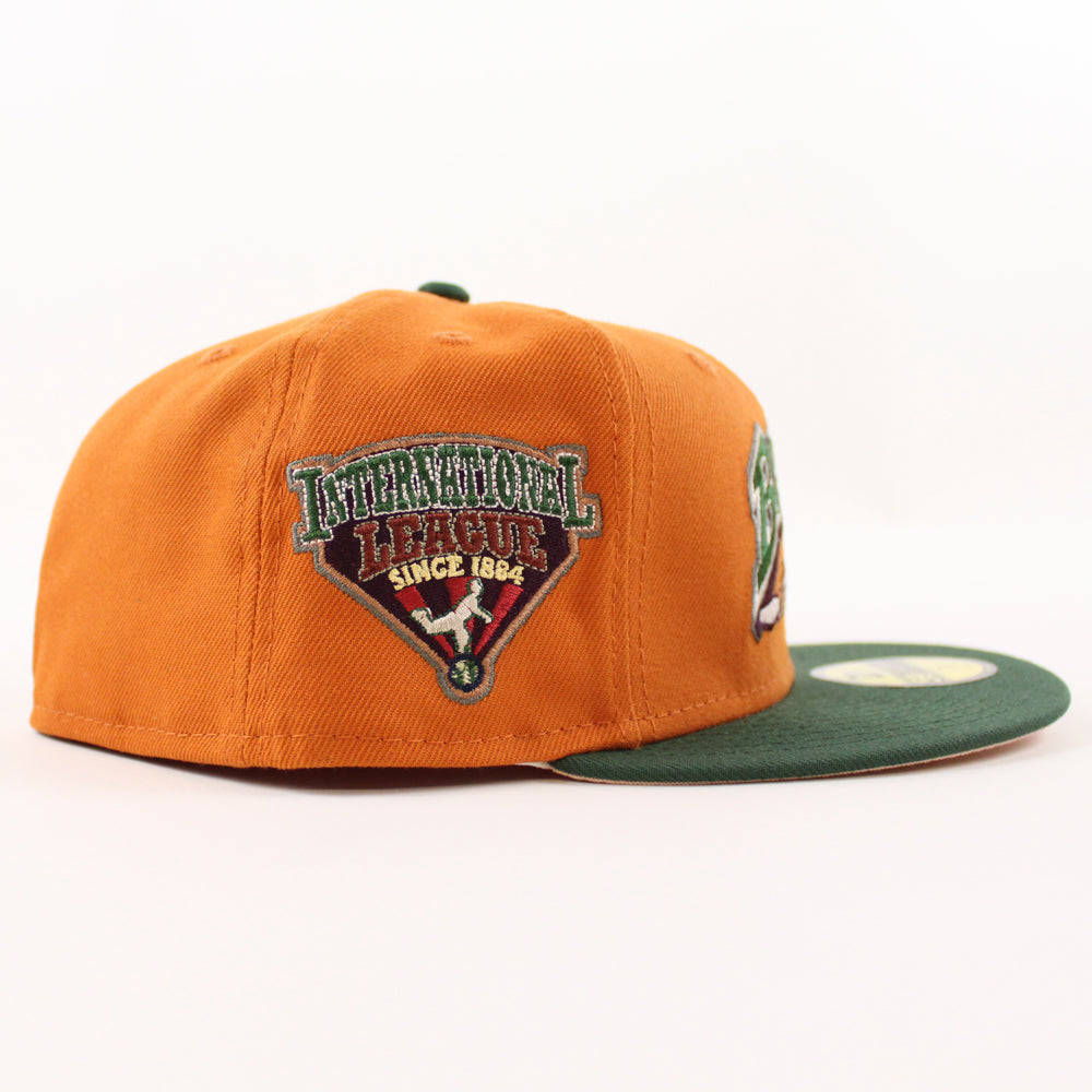 BUFFALO BISONS INTERNATIONAL LEAGUE New Era 59Fifty Fitted Hat (Fight Orange MOUNTAIN PINE GREEN BLUSH SKY Under Brim)