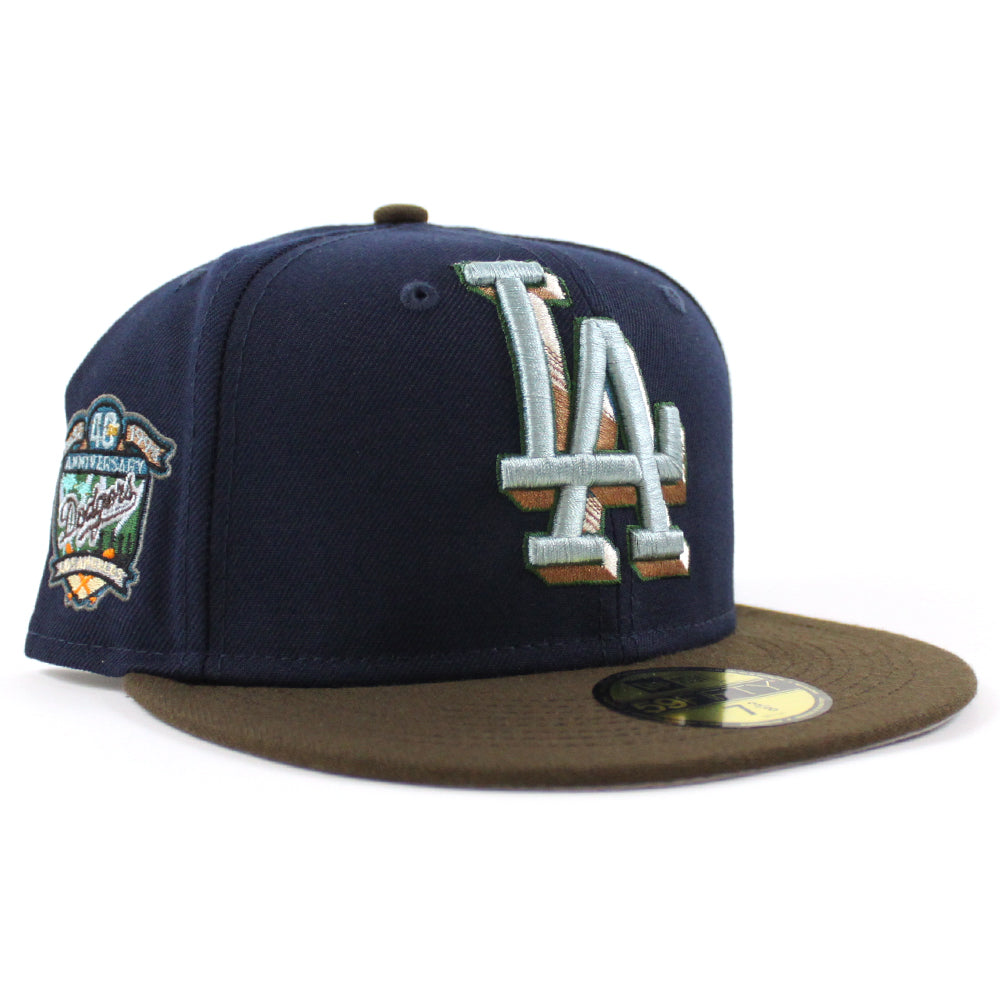 Los Angeles Dodgers 40th Anniversary New Era 59Fifty Fitted Hat in OceanSide Blue, Walnut and Gray Under Brim.