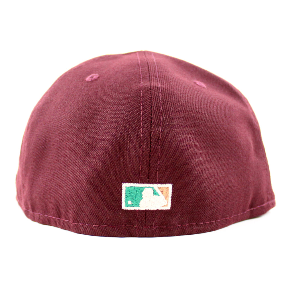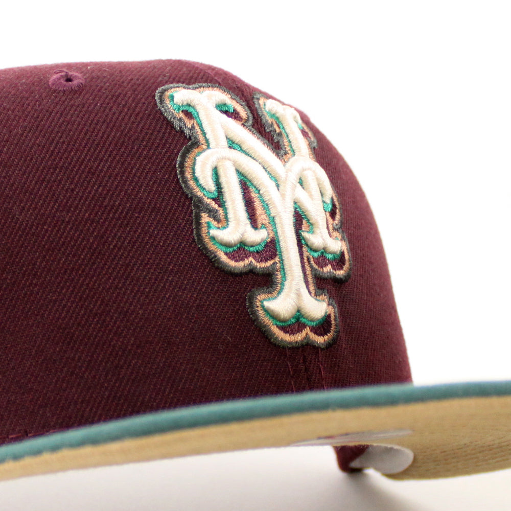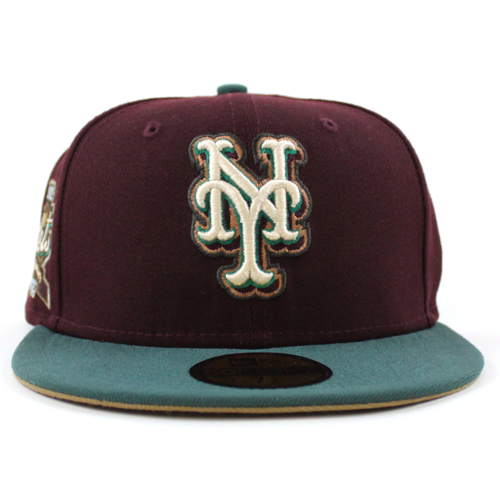 New York Mets 1962 Mets 40th Anniversary New Era Fitted Hat in Maroon, Pine Needle Green and Khaki Under Brim.