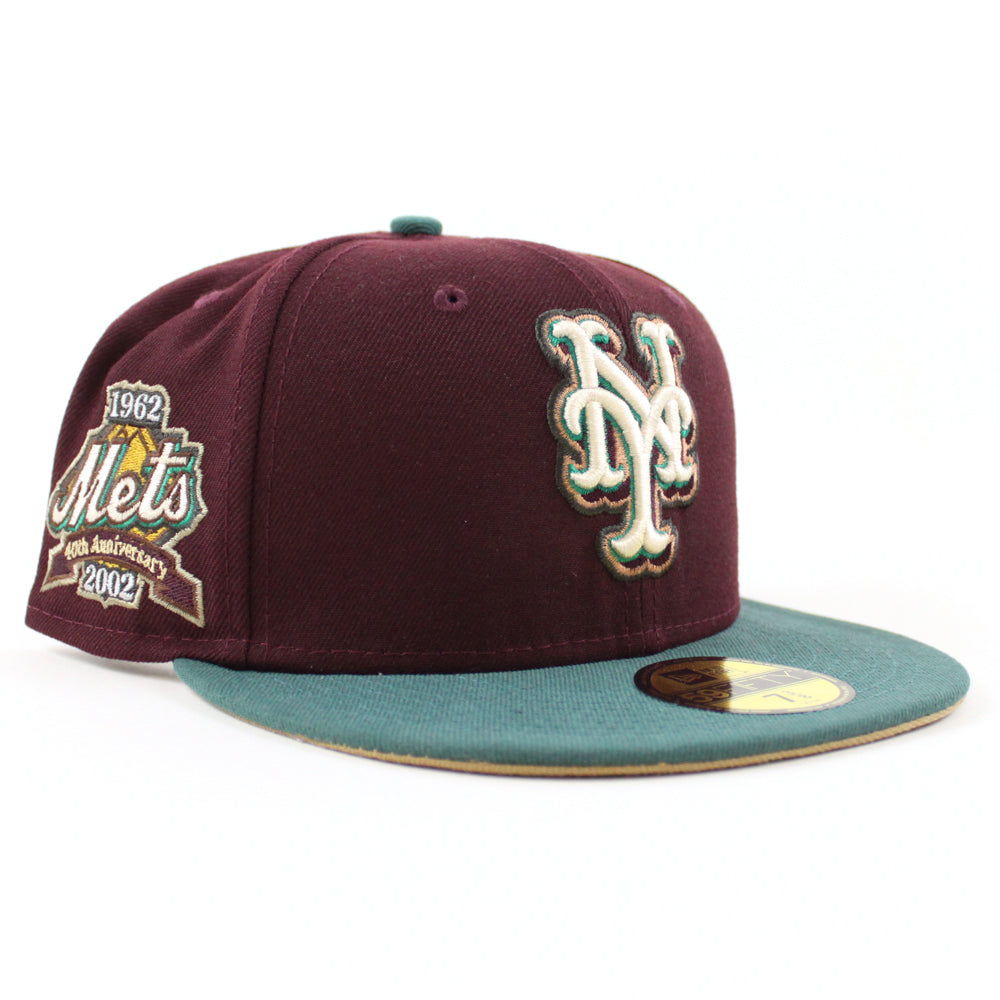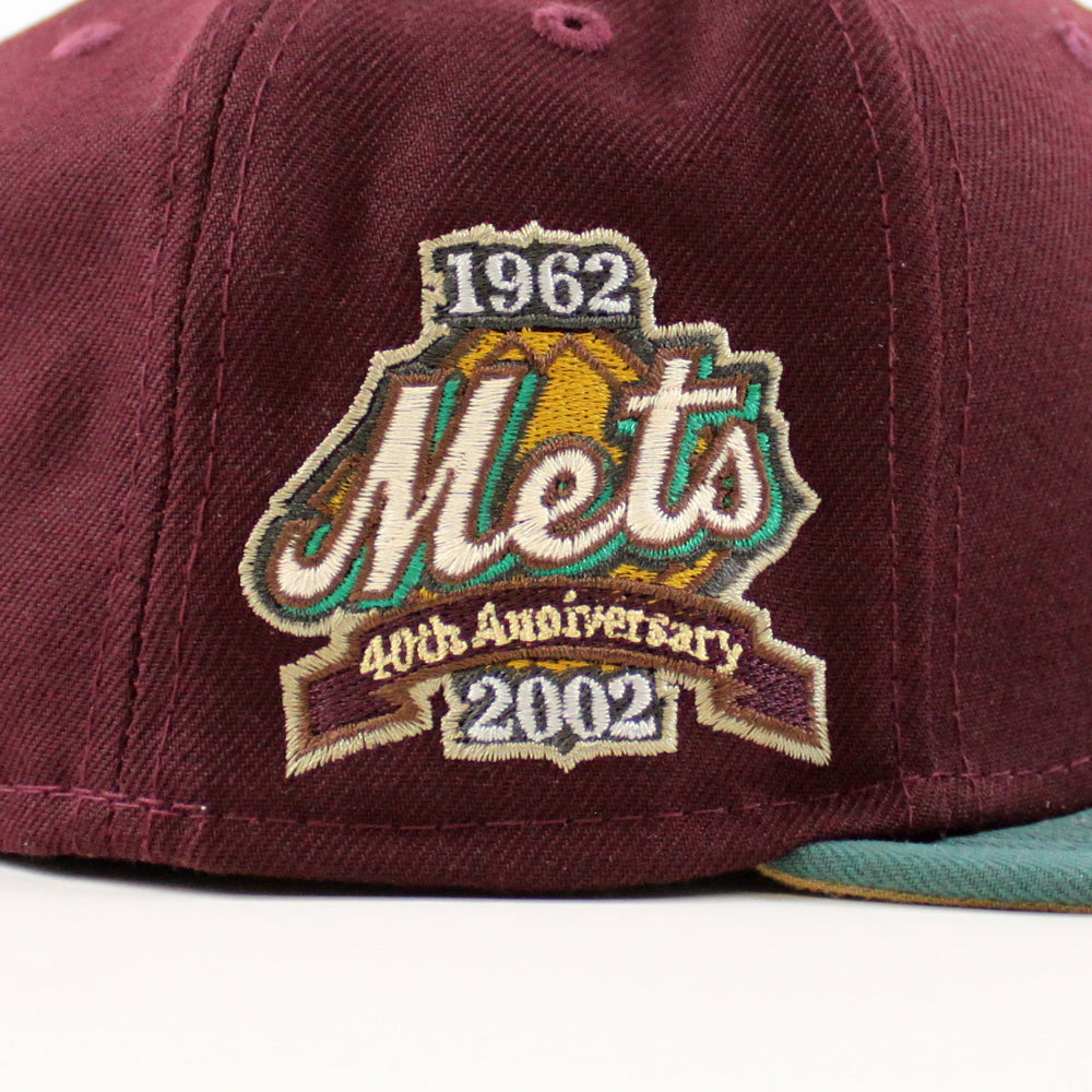 New York Mets 1962 METS 40TH ANNIVERSARY 2002 New Era 59Fifty Fitted Hat (MAROON PINE NEEDLE GREEN KHAKI Under Brim)