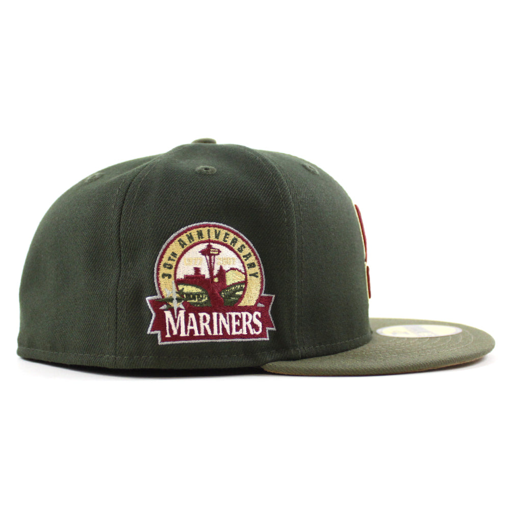 Seattle Mariners 30TH Anniversary New Era 59Fifty Fitted Hat in SeaWeed, Olive and Khaki Under Brim.