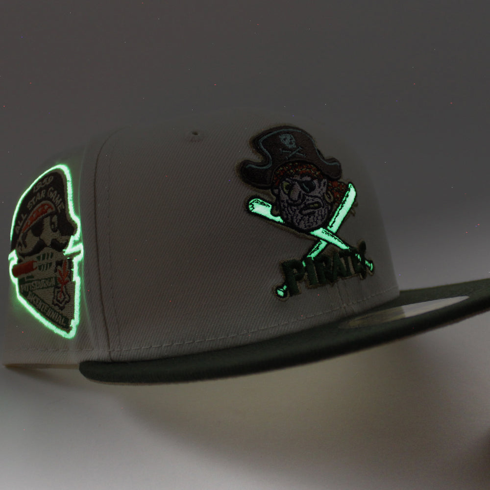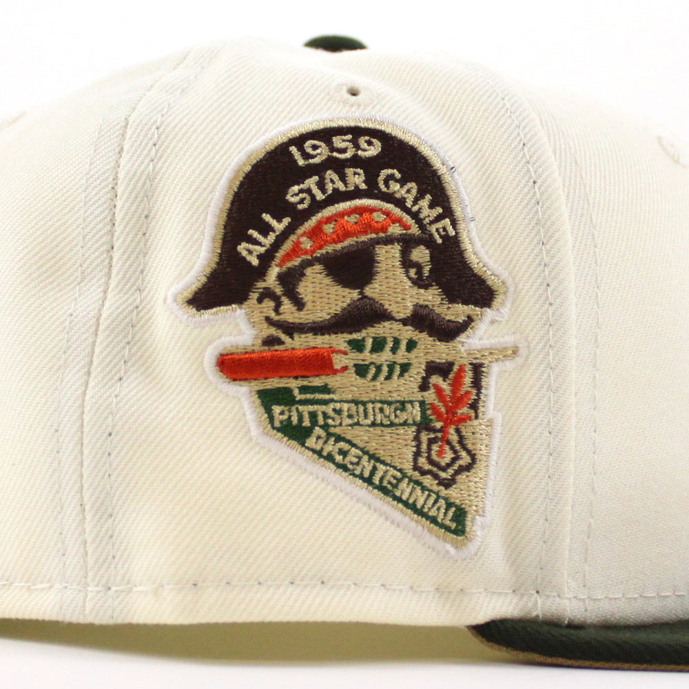 Pittsburgh Pirates 1959 All Star Game New Era 59Fifty Fitted Hat (GITD CHROME WHITE DARK SEAWEED KHAKI Under Brim)