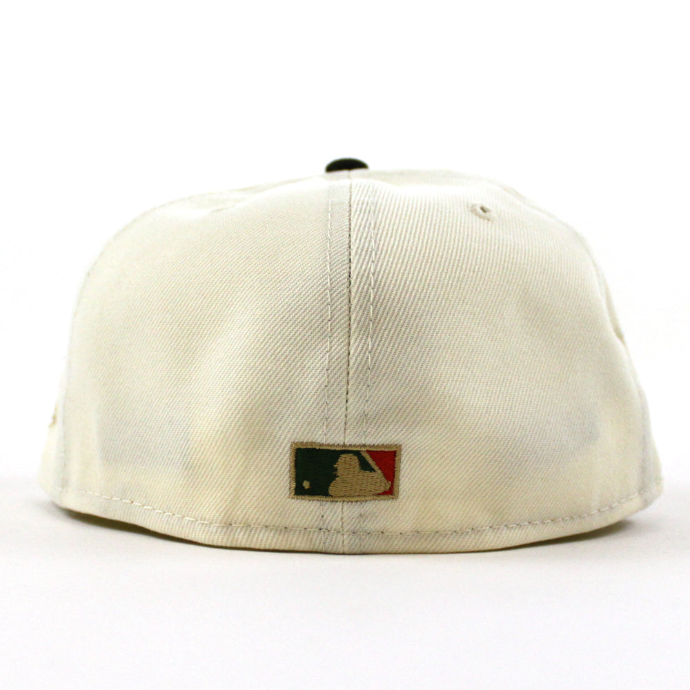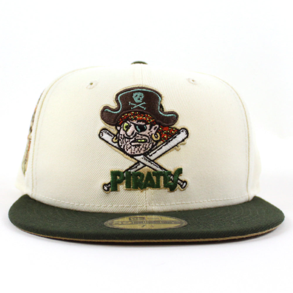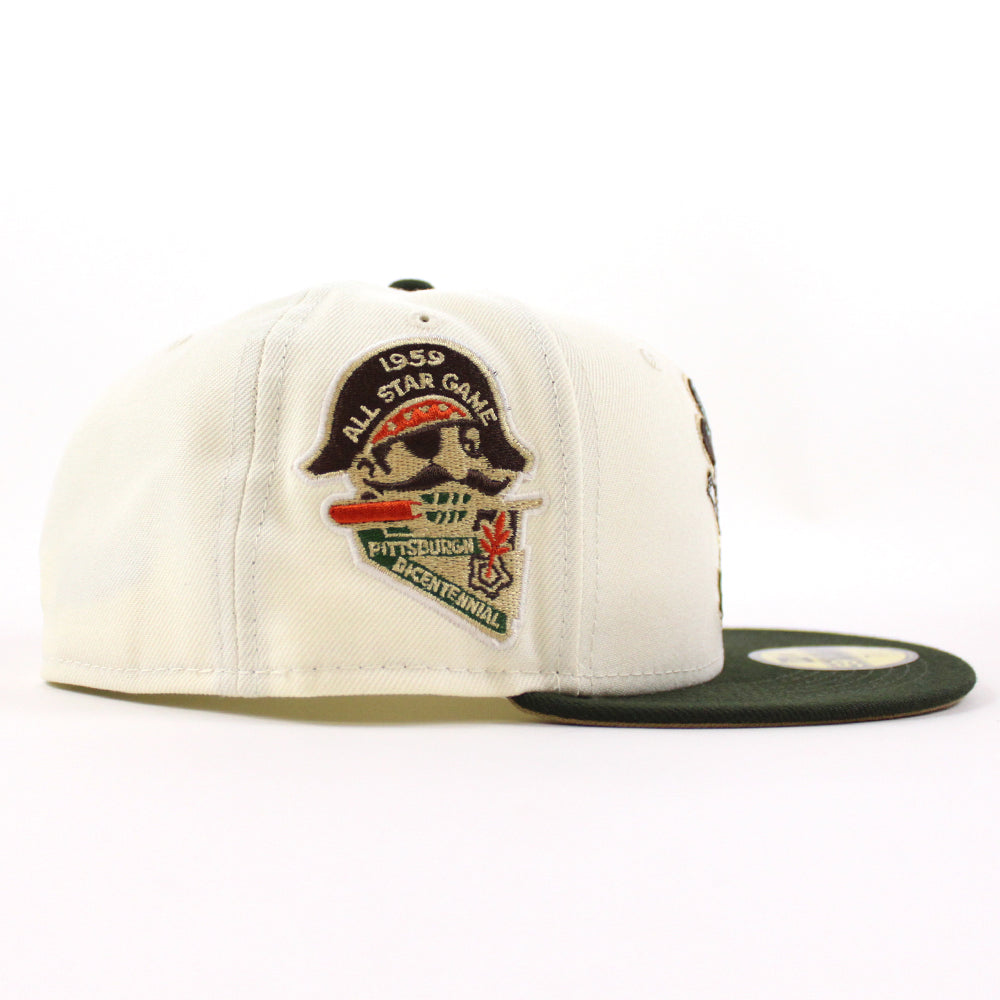 Pittsburgh Pirates 1959 All Star Game New Era 59Fifty Fitted Hat is Chrome White, Dark SeaWeed and Khaki Under Brim.