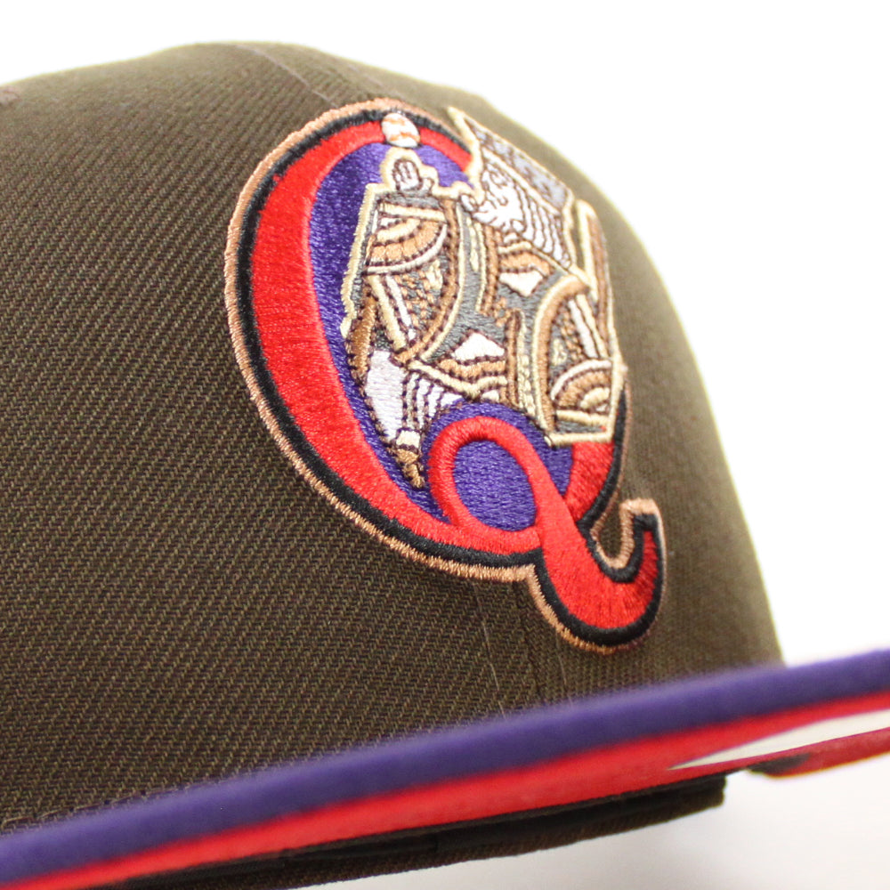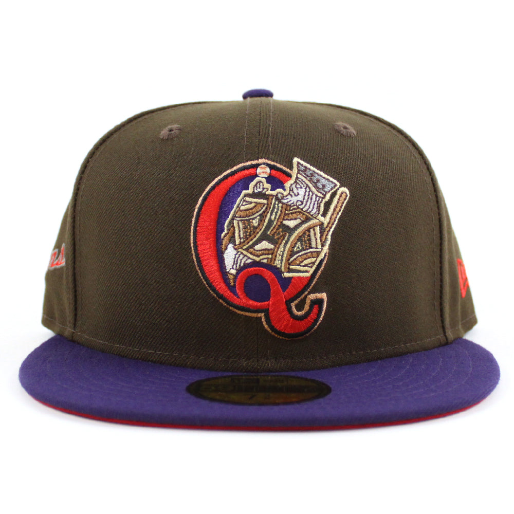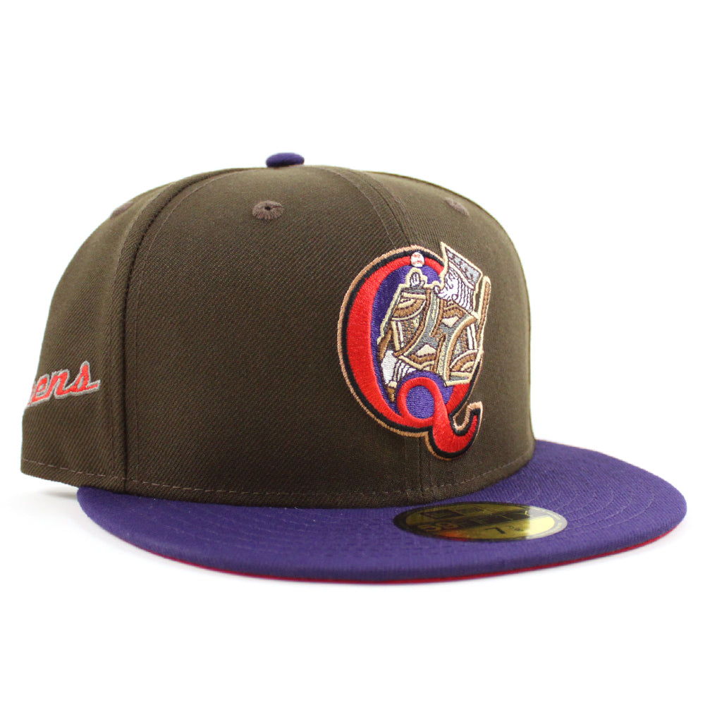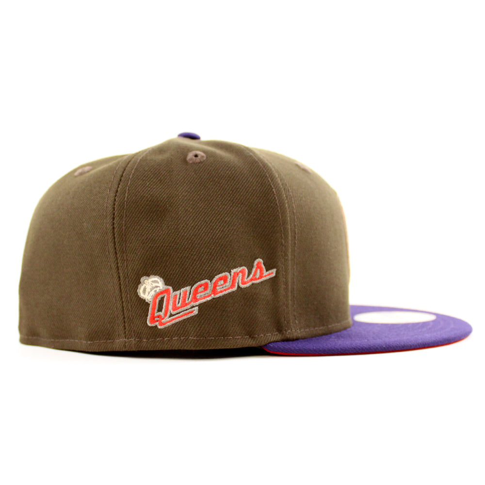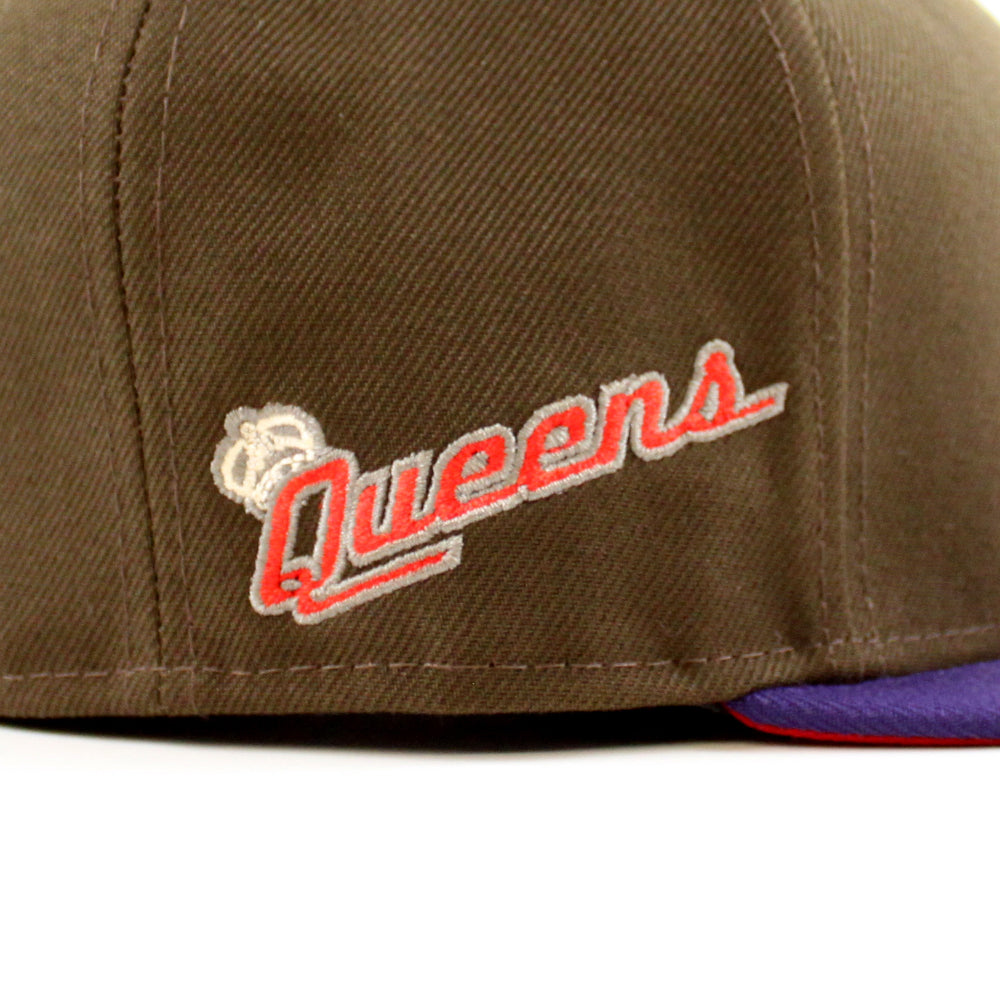 QUEENS KINGS Queens Patch New Era 59Fifty Fitted Cap HOMETOWN COLLECTION in Walnut, Purple and Scarlet Under Brim.