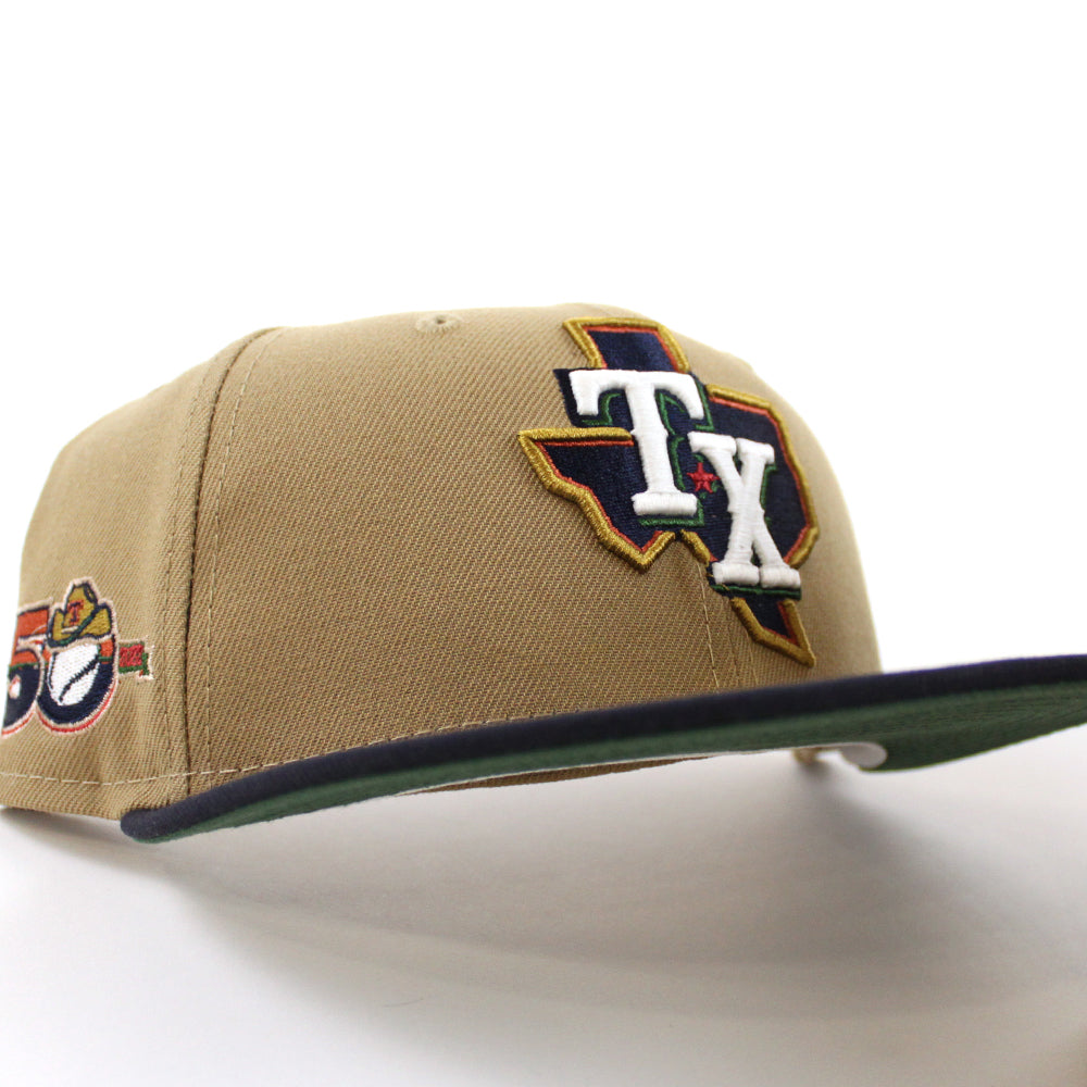 Texas Rangers INAUGURAL SEASON New Era 59Fifty Fitted Hat (GITD Khaki Navy Green Under Brim)