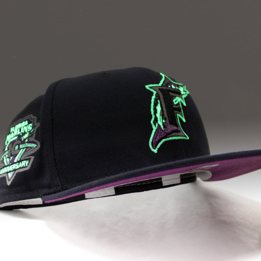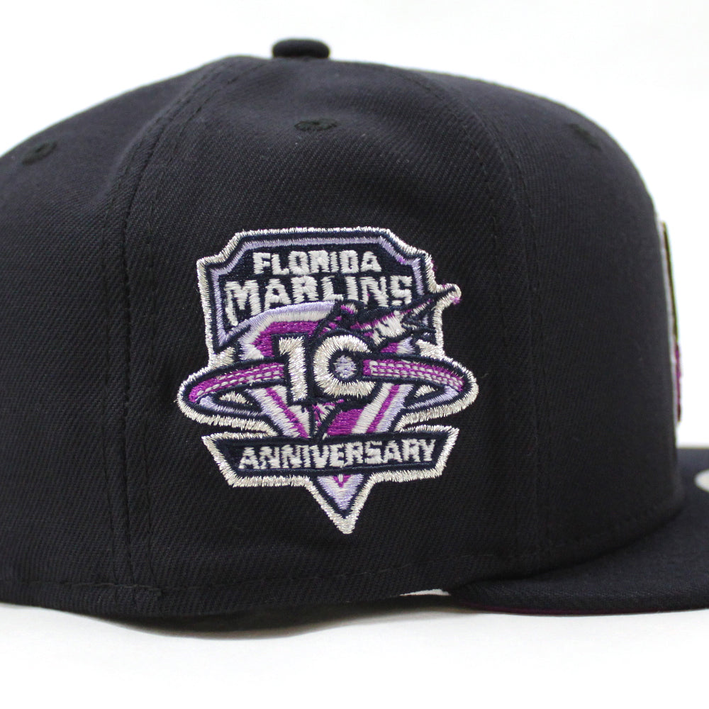Florida Marlins 10th Anniversary New Era 59Fifty Fitted Hat (GITD Navy Grape Under brim)