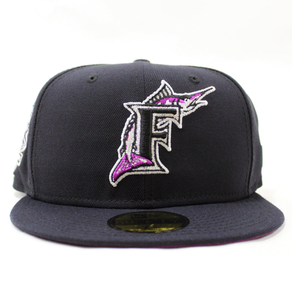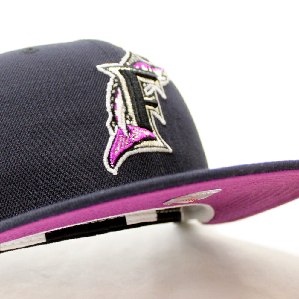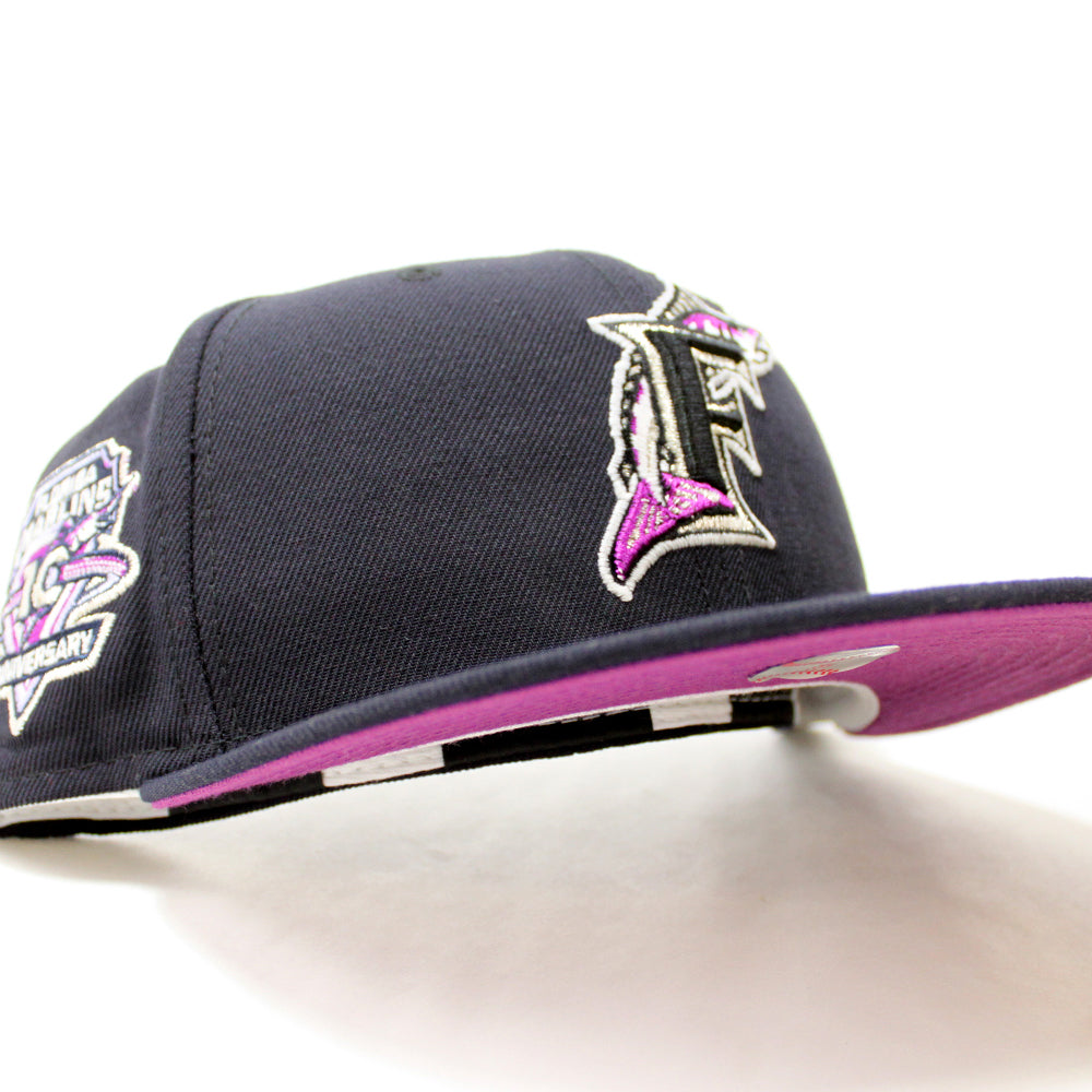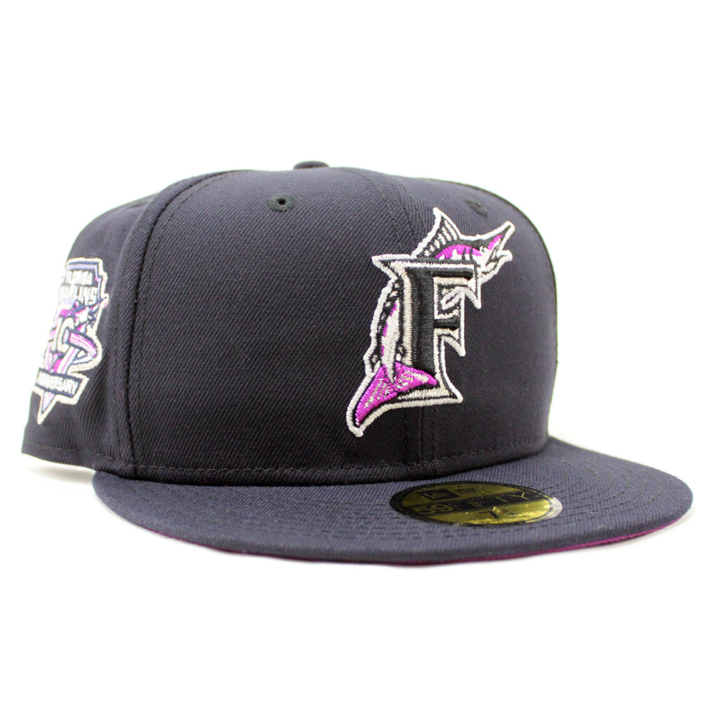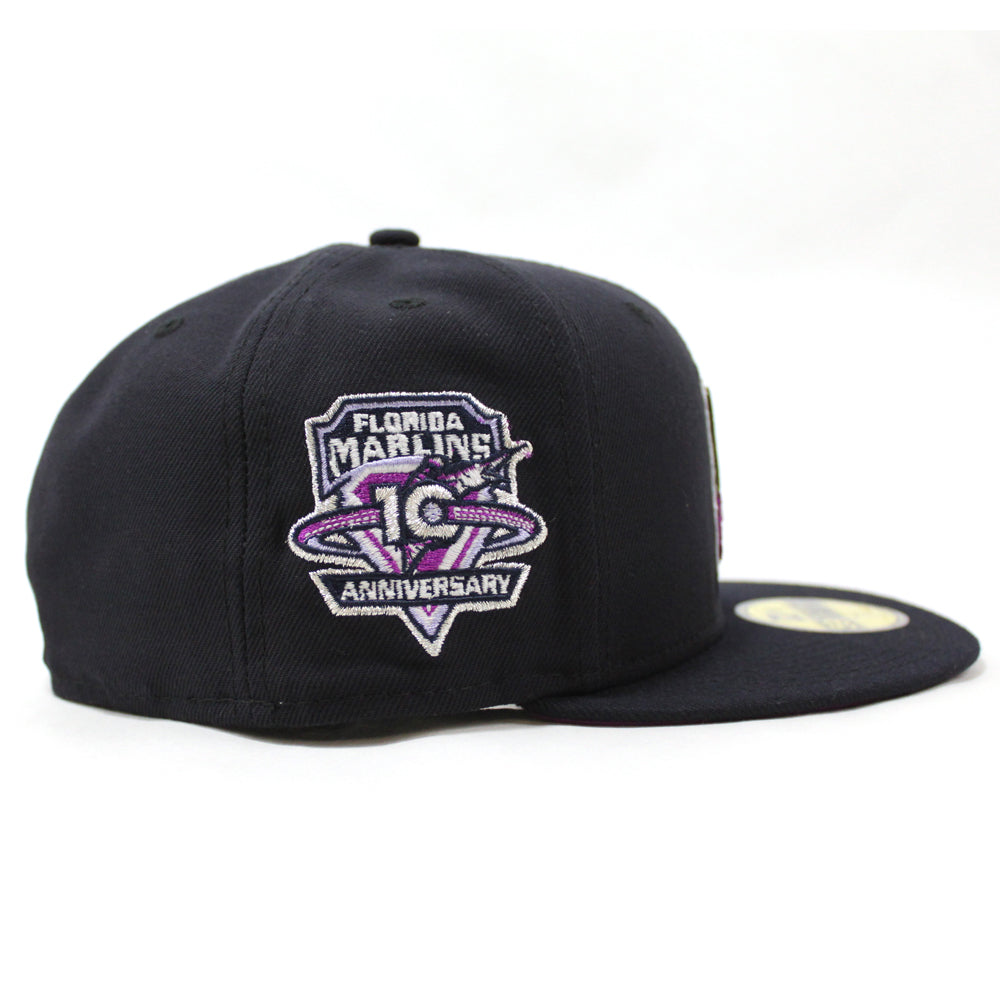 Florida Marlins 10 Anniversarys New Era 59Fifty Fitted Hat in Navy & Grape Under brim.