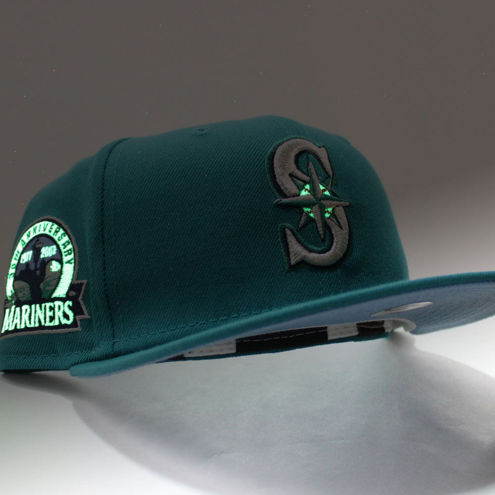 Seattle Mariners 30th Anniversary New Era 59Fifty Fitted Hat (Glow in the Dark Aqua Sky Blue Under Brim)