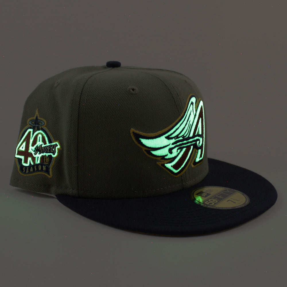 Anaheim Angels 40TH SEASON New Era 59Fifty Fitted Hat (GITD GREEN BARK NAVY GRILLED YELLOW Under Brim)