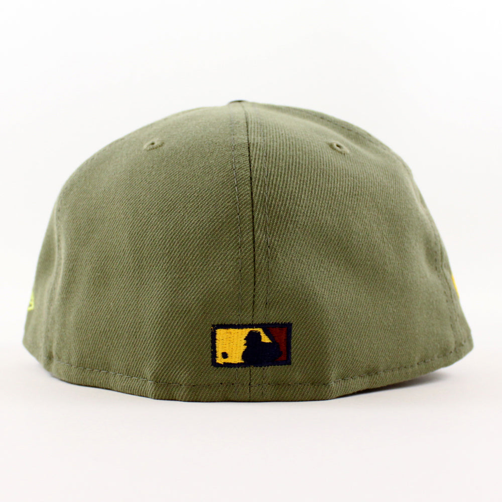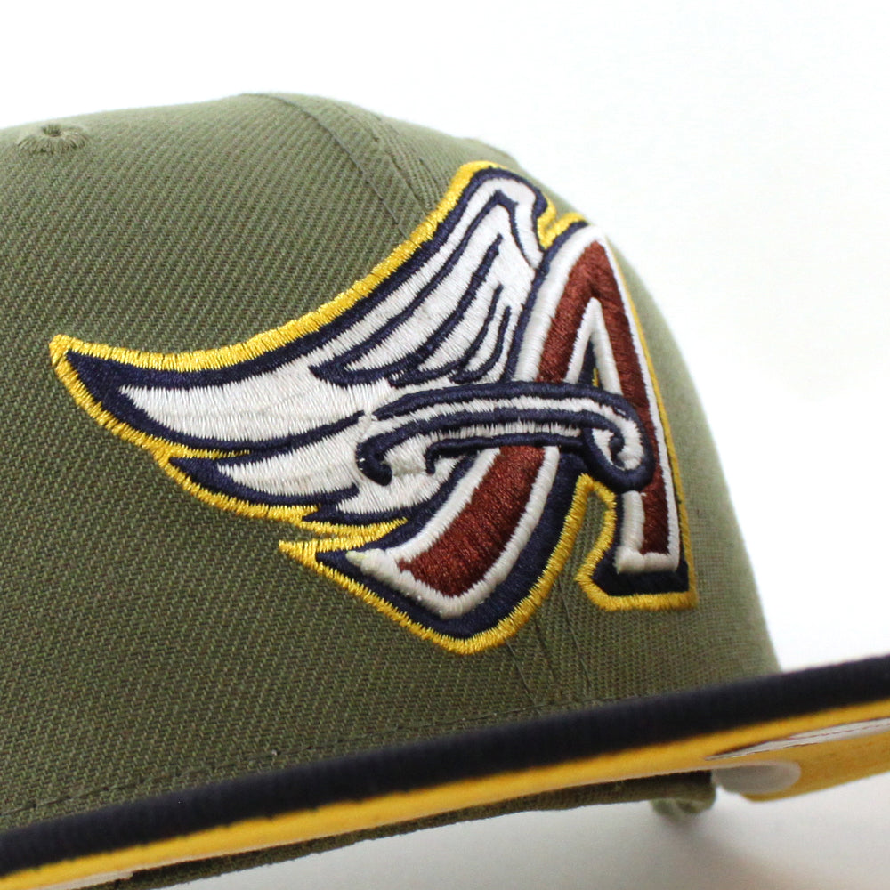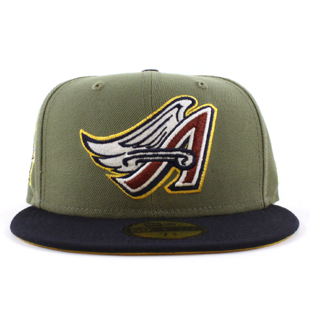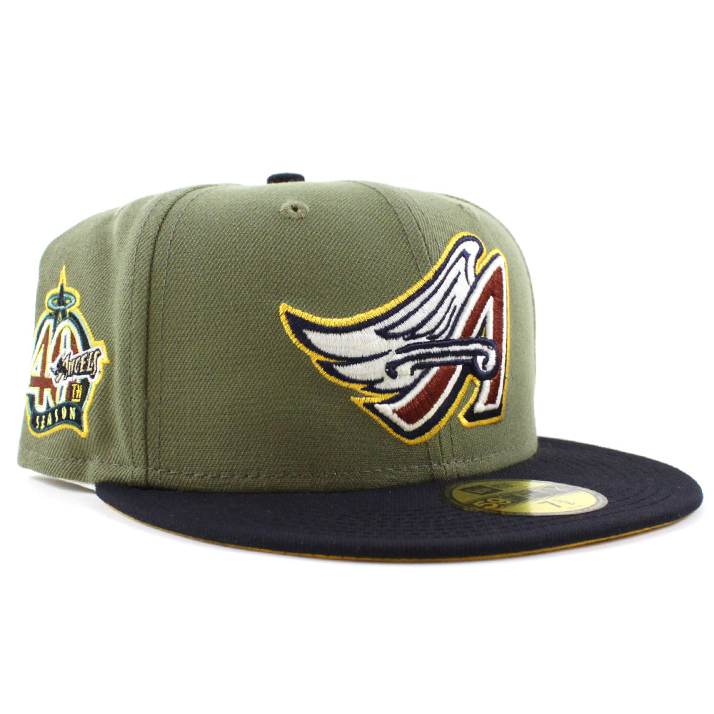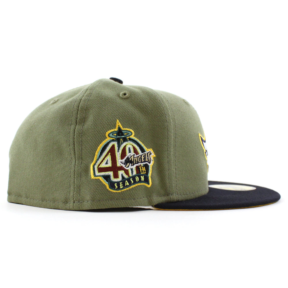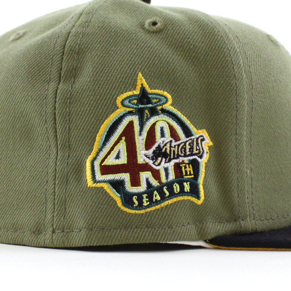 Anaheim Angels 40Th Season New Era 59Fifty Fitted Cap in Green Bark, Navy, and Grilled Yellow Under Brim.