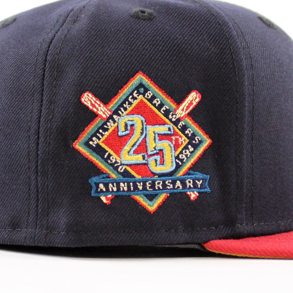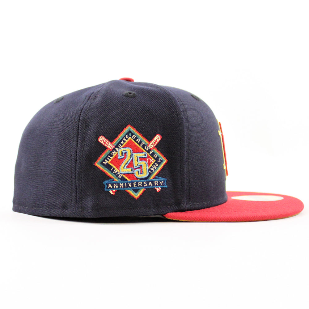 Milwaukee Brewers 25TH New Era 59Fifty Fitted Hat in Navy, with Pinot Red Visor & Bronze Under Brim.