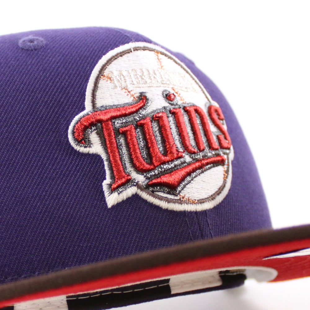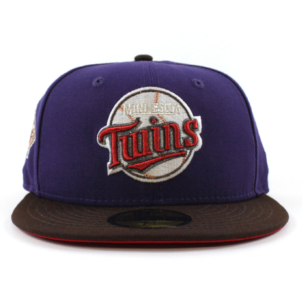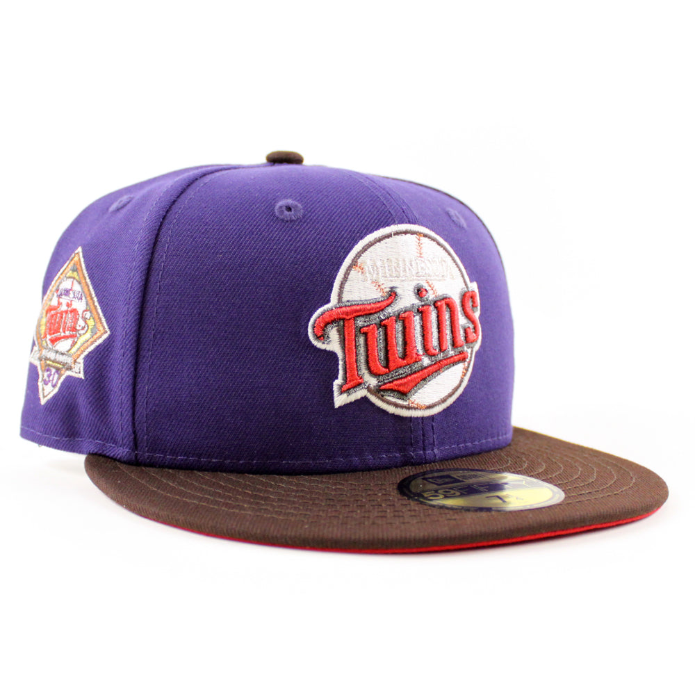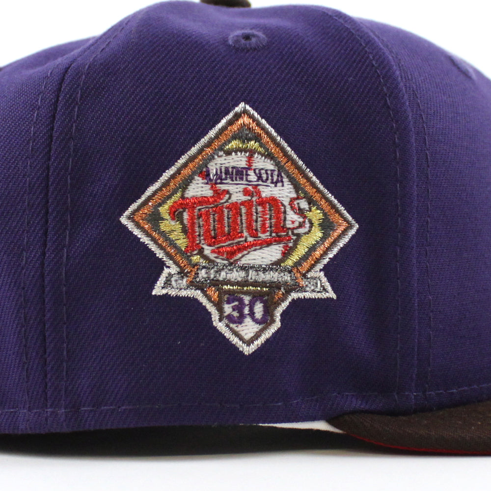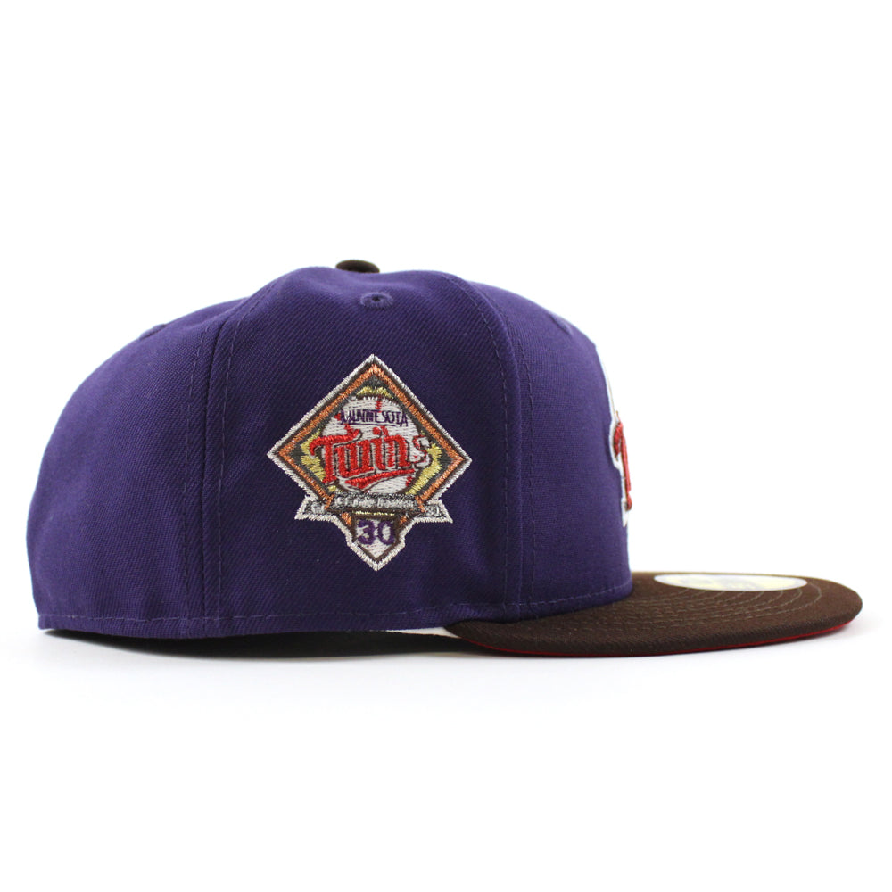Minnesota Twins 30th Anniversary New Era Fitted Hat in Purple, Burnt Wood and Scarlet Under Brim.