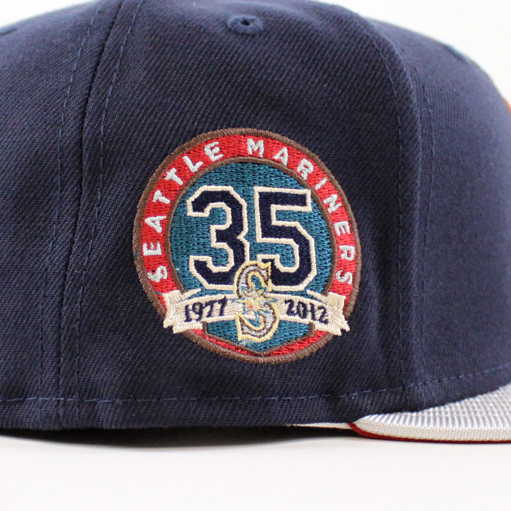 Seattle Mariners 35TH ANNIVERSARY New Era 59Fifty Fitted Hat (NIGHT SHIFT NAVY MET SILVER PINOT RED Under Brim)