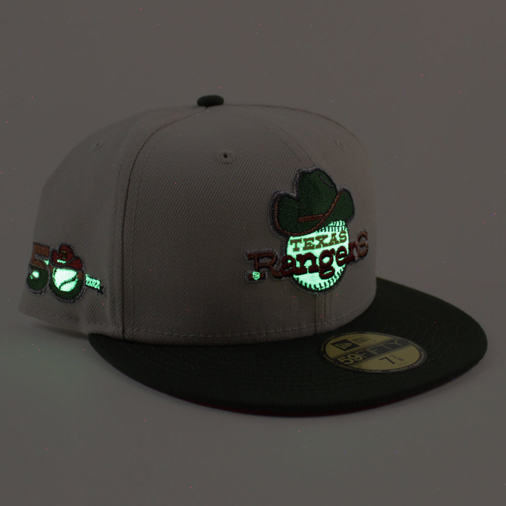 Texas Rangers 50th Anniversary New Era 59Fifty Fitted Hat (GITD Stone SeaWeed Pinot Under Brim)