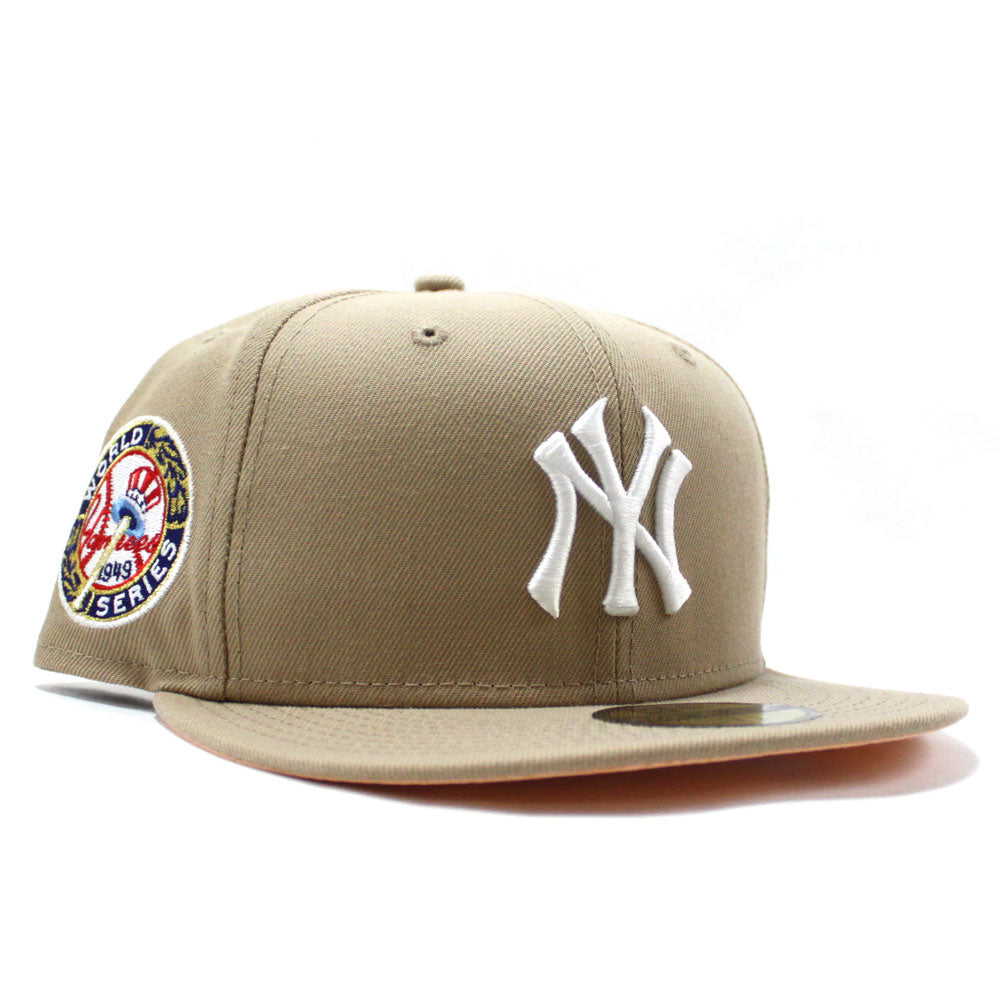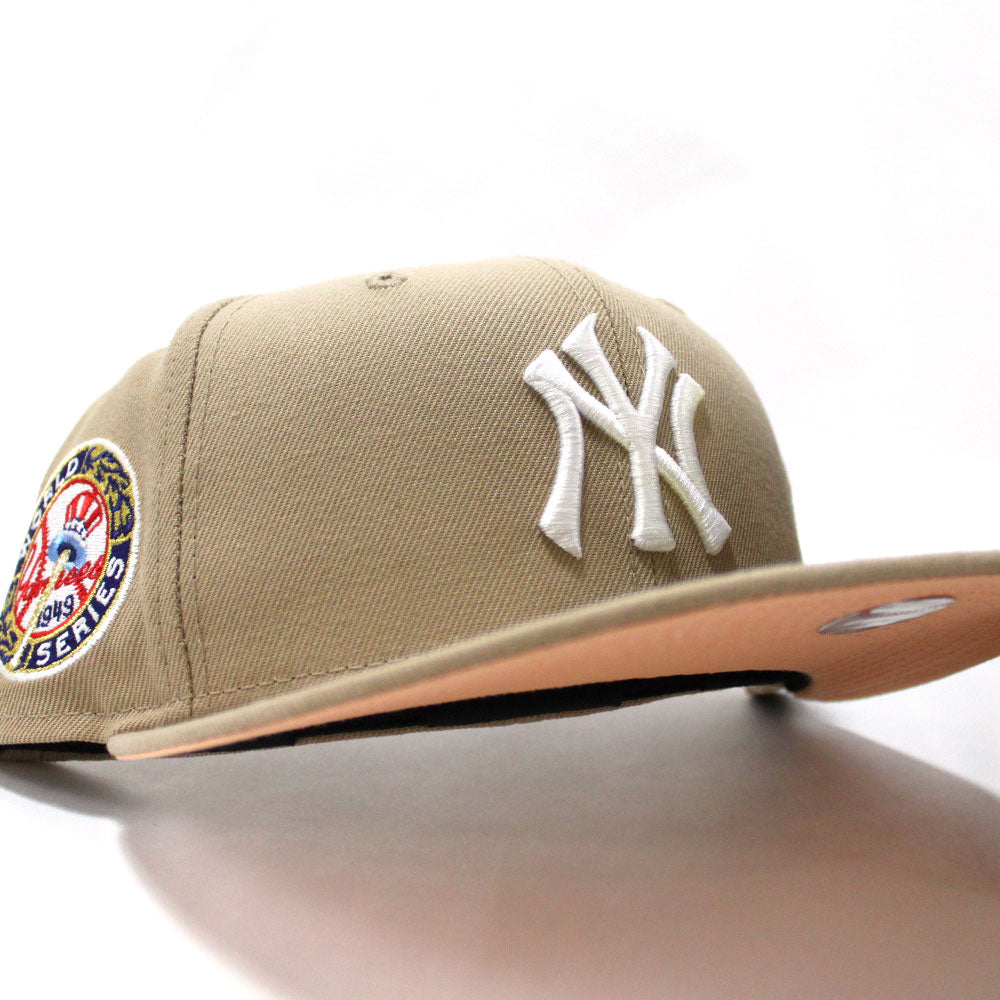 New York Yankees 1949 World Series New Era 59Fifty Fitted Hat in Camel & Peach Under Brim.