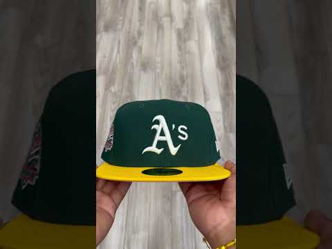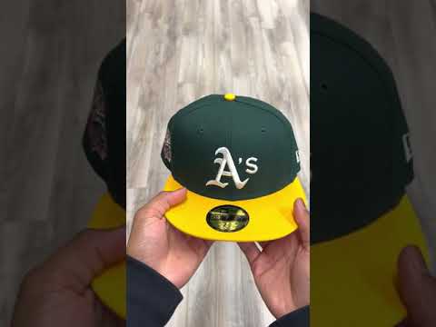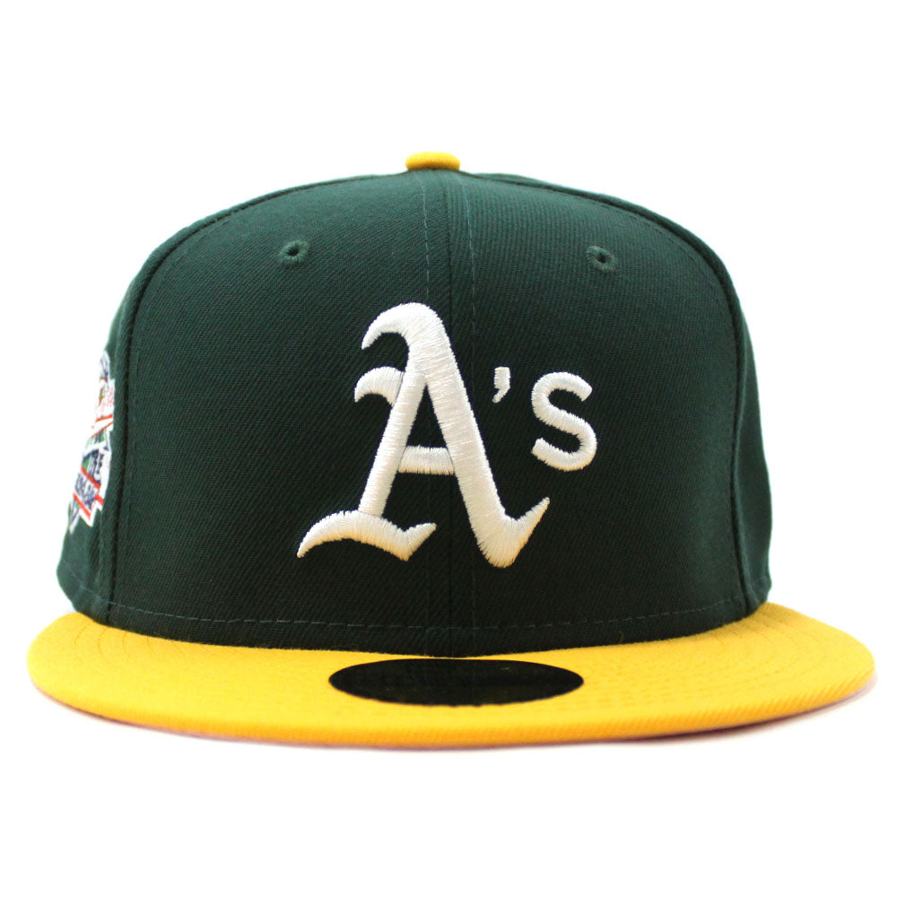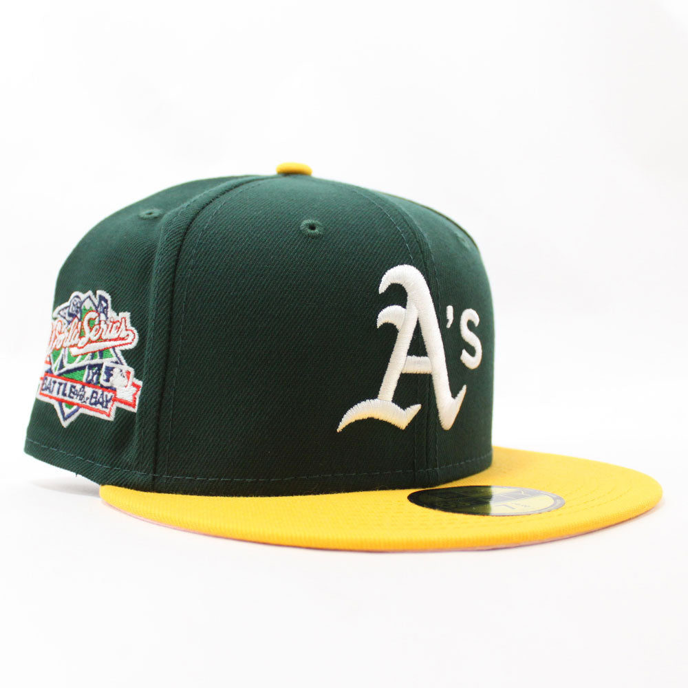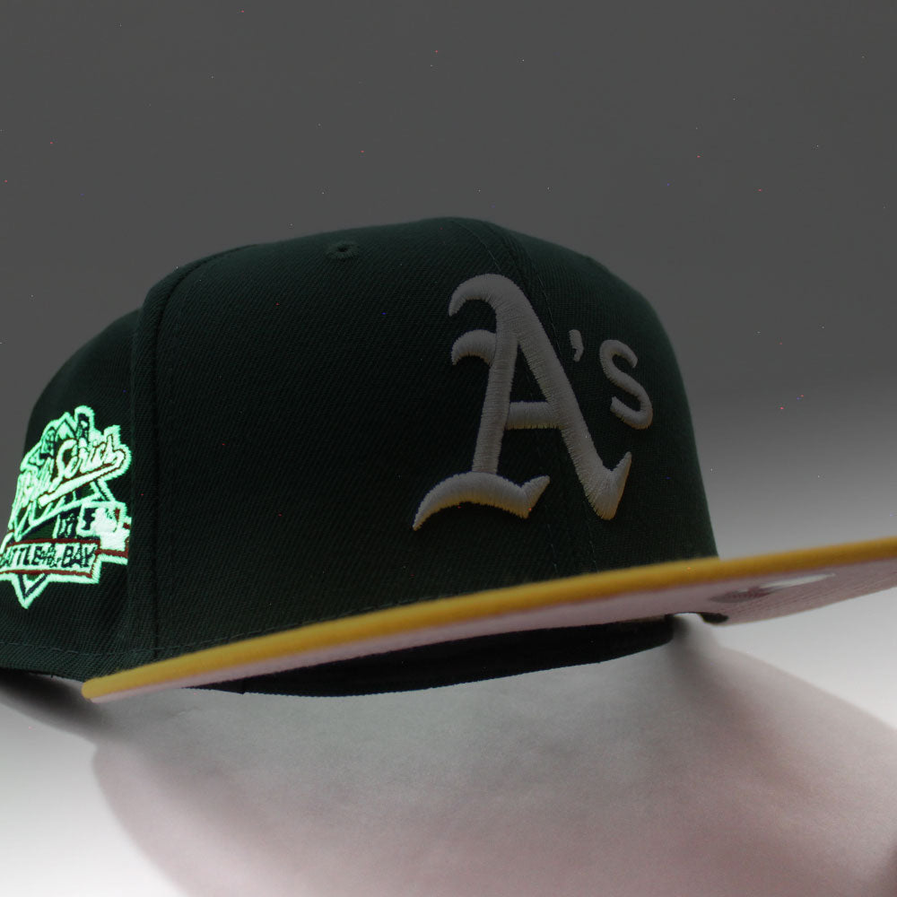 Oakland Athletics 1989 World Series BATTLE OF THE BAY New Era 59Fifty Fitted Hat (Green Yellow Pink Under Brim)