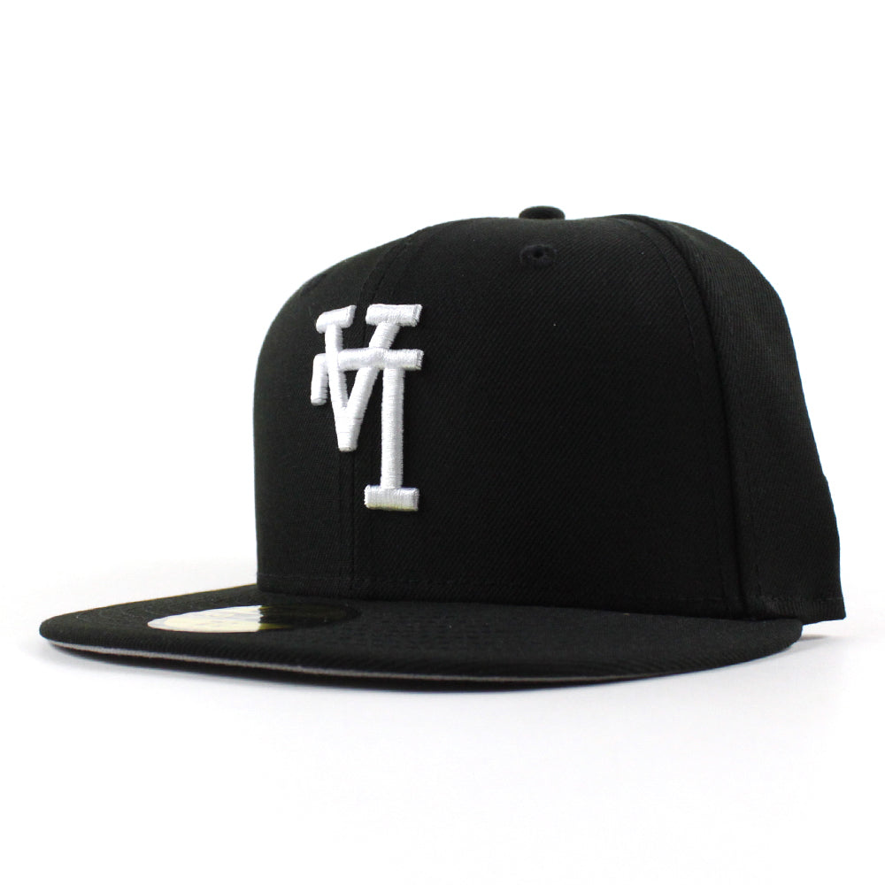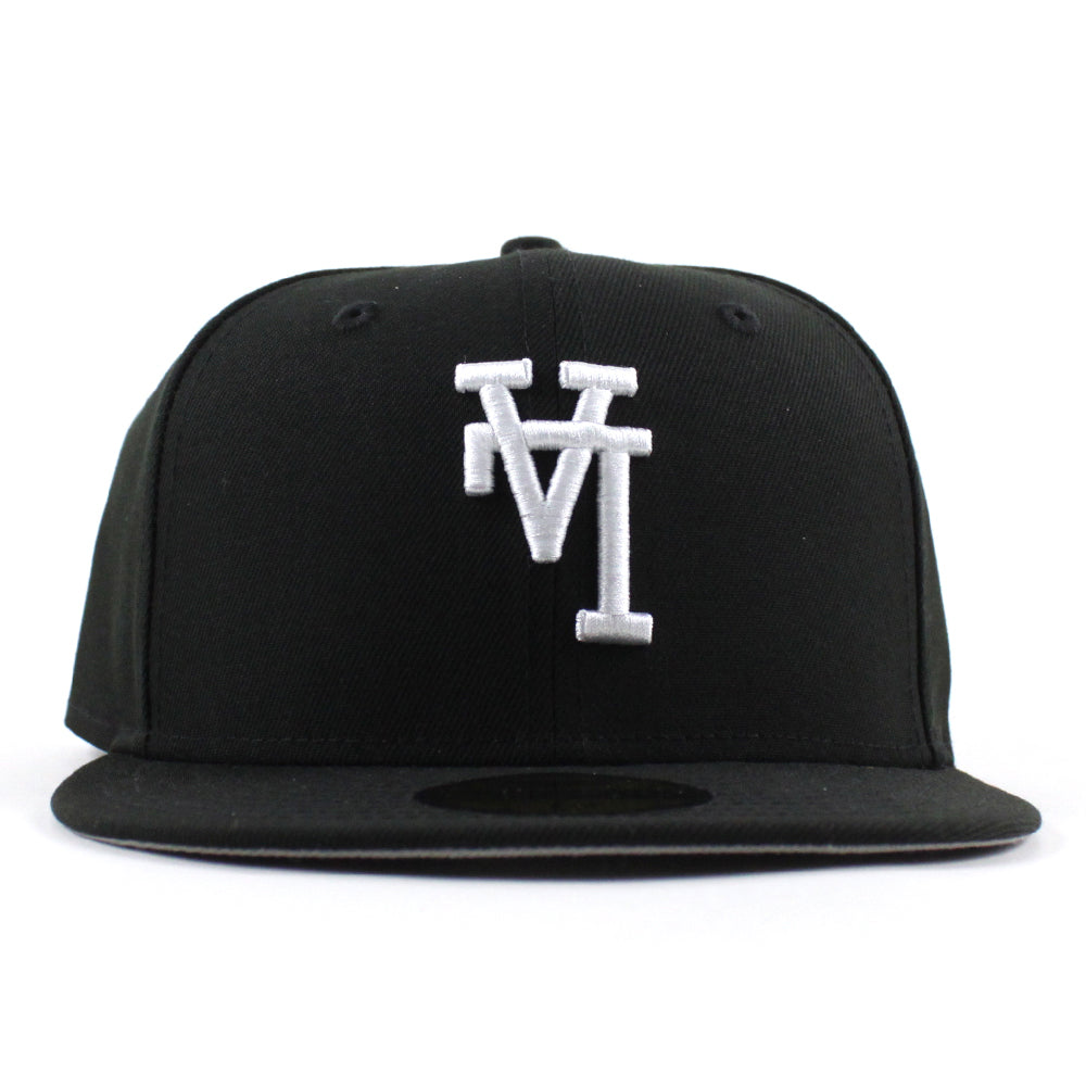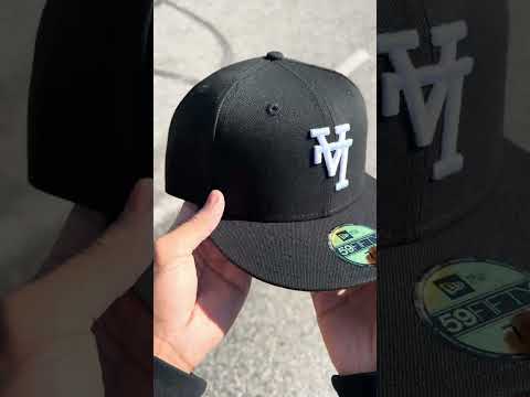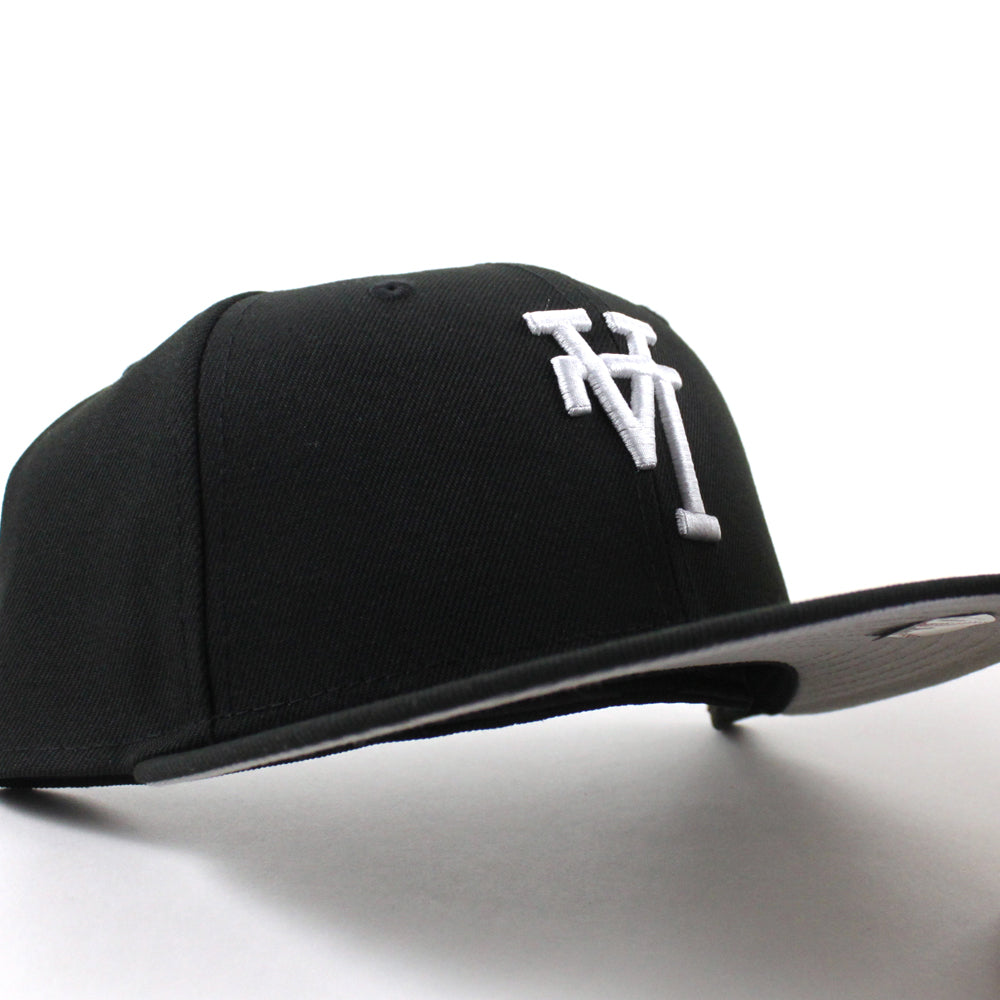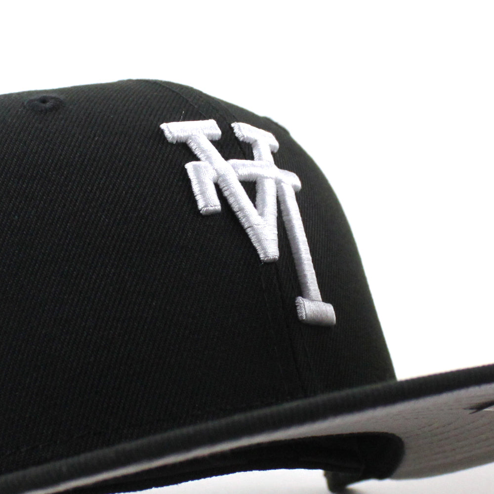 Los Angeles Dodgers Upside Down Logo New Era 59Fifty Fitted Hat in Black and Gray Under Brim.