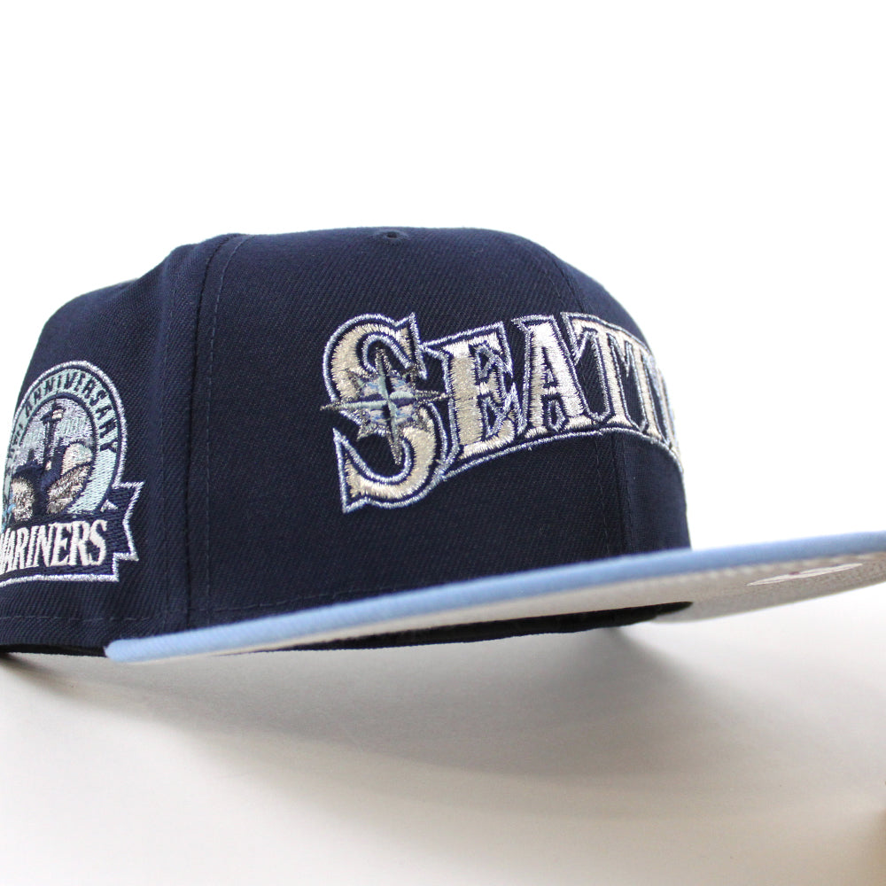 Seattle Mariners 30TH Anniversary New Era 59Fifty Fitted Hat (Oceanside Blue Sky Blue Metallic Silver Under Brim)