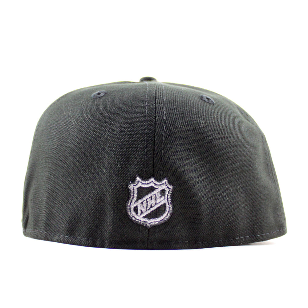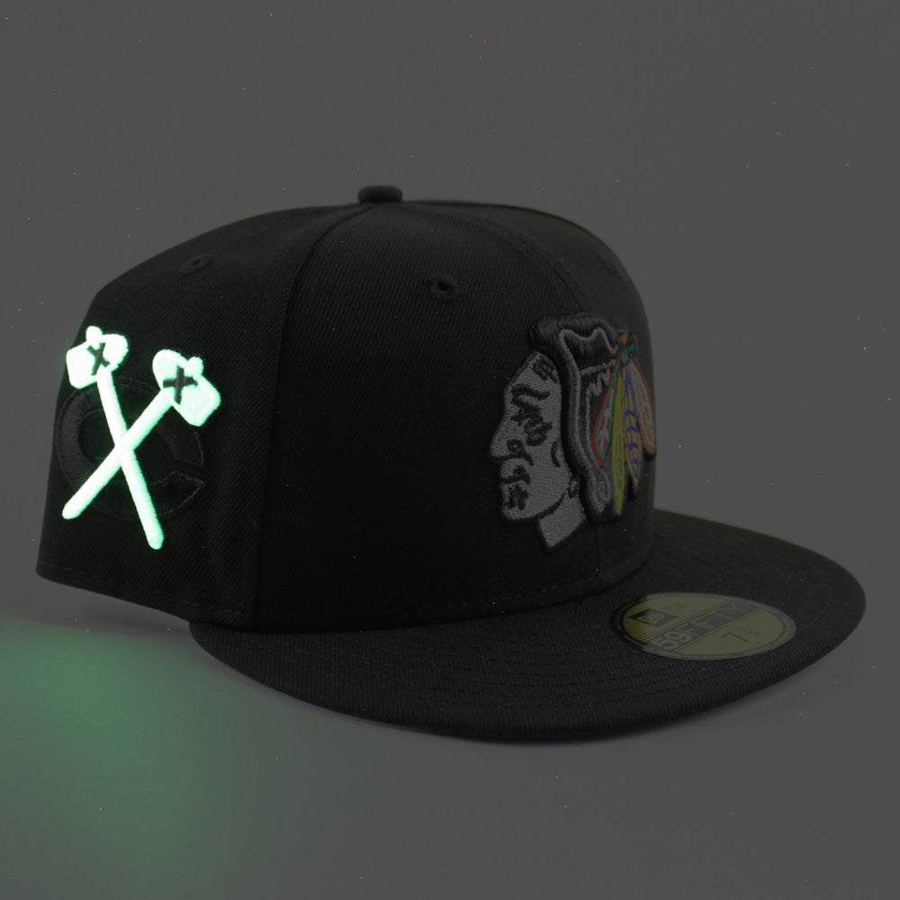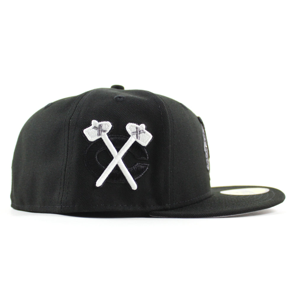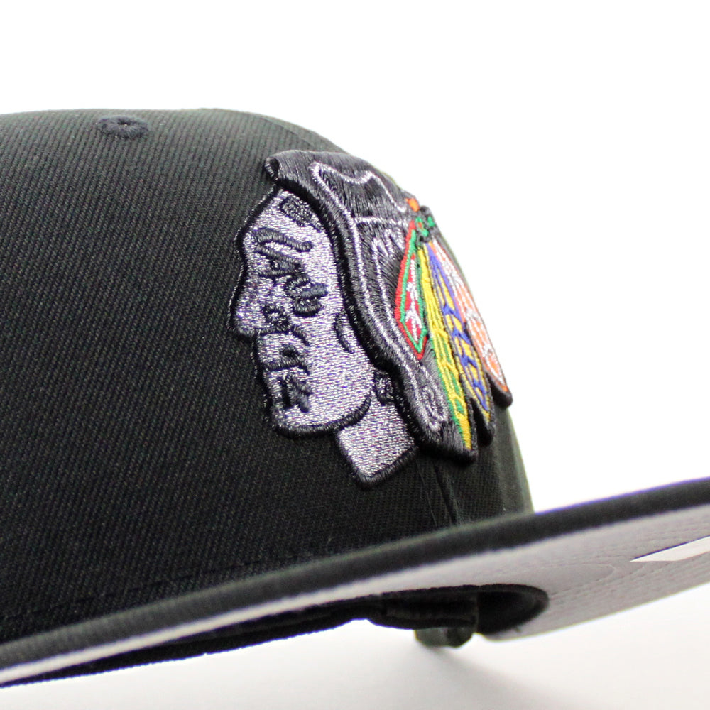 Chicago Blackhawks Black Hawks Logo New Era 59Fifty Fitted Hat in Black and Gray Under brim.