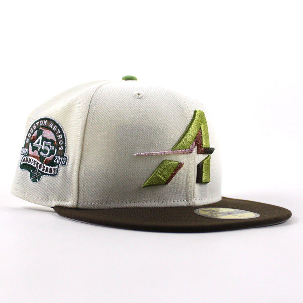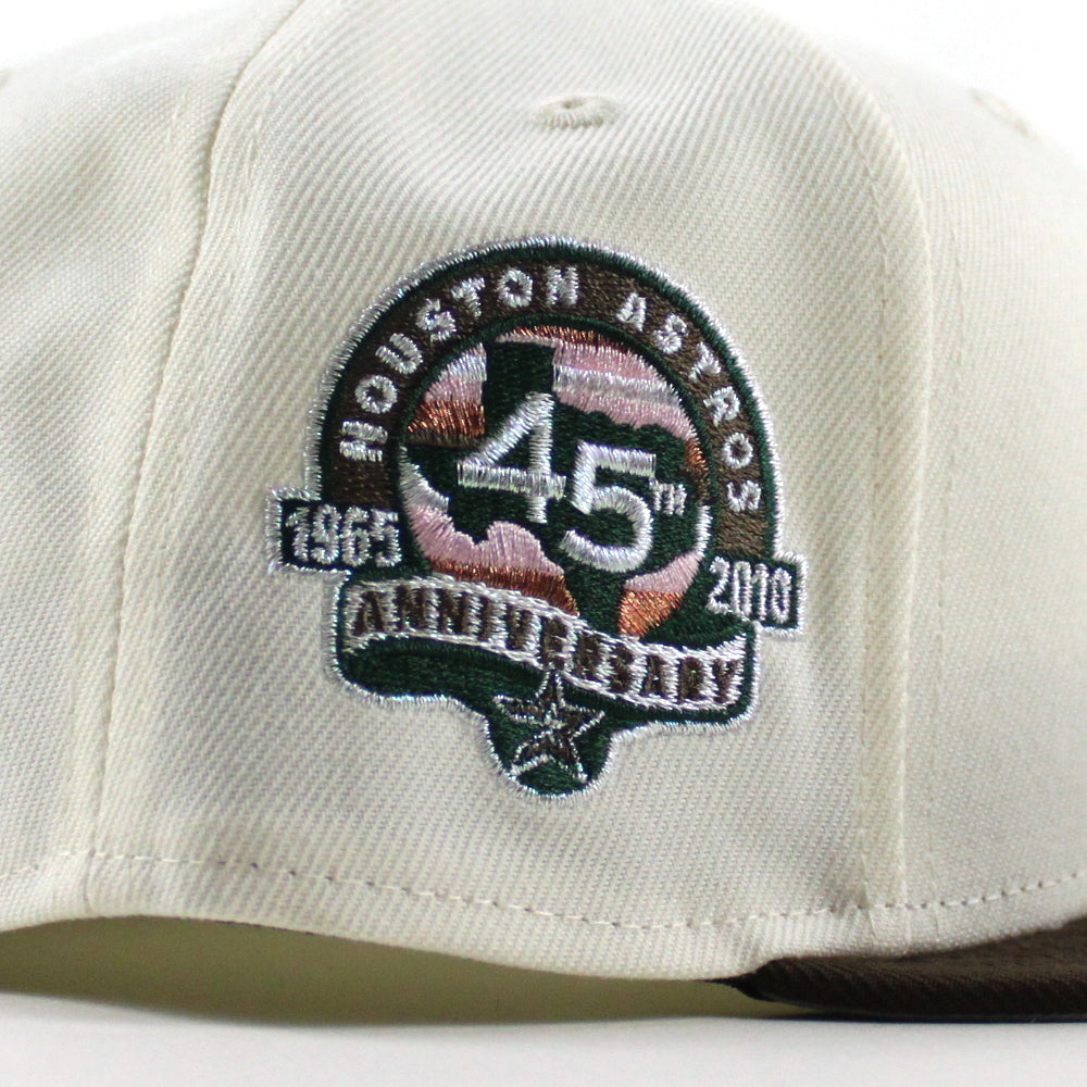 Houston Astros 45th Anniversary New Era 59Fifty Fitted Hat in Chrome White, Walnut and Gray Under Brim.