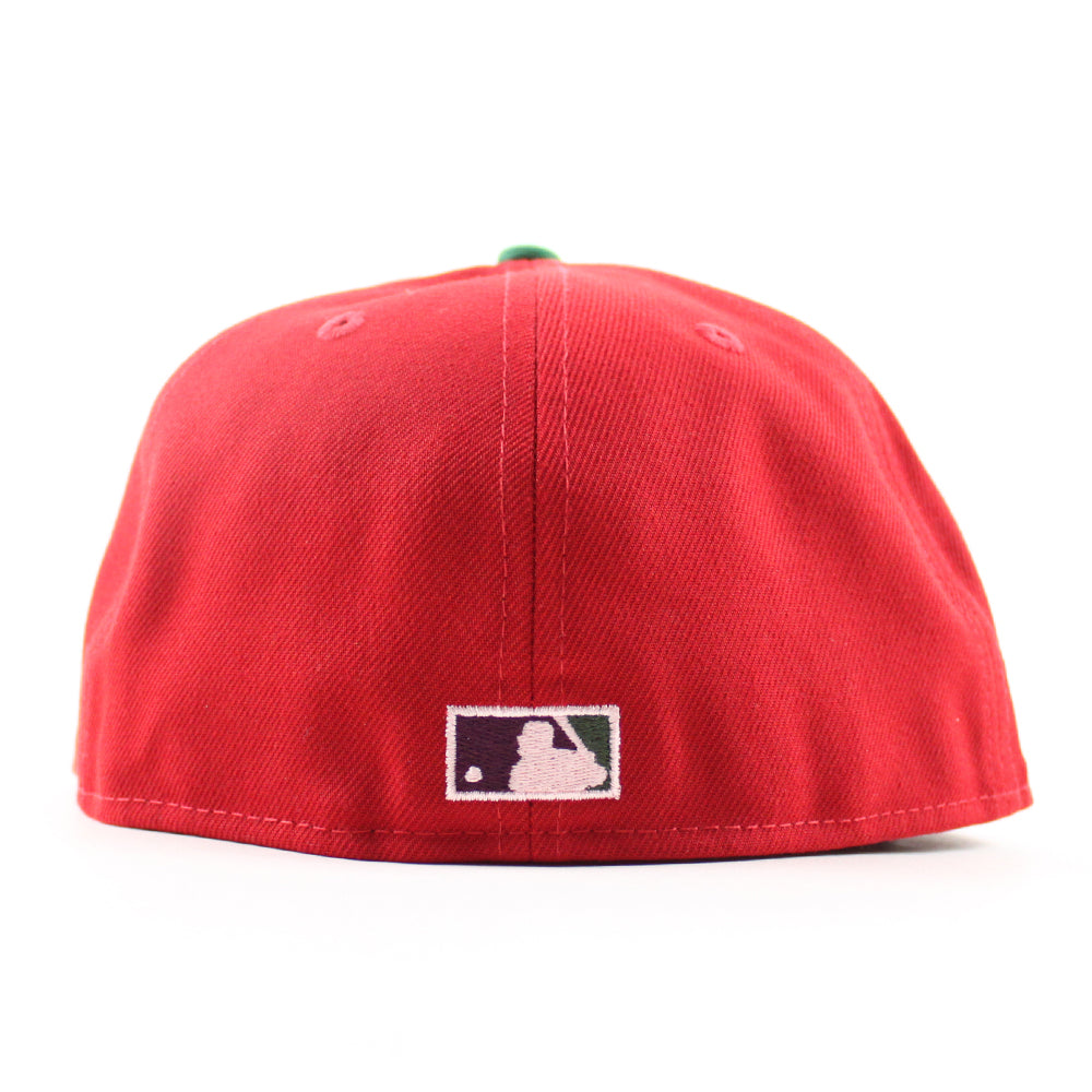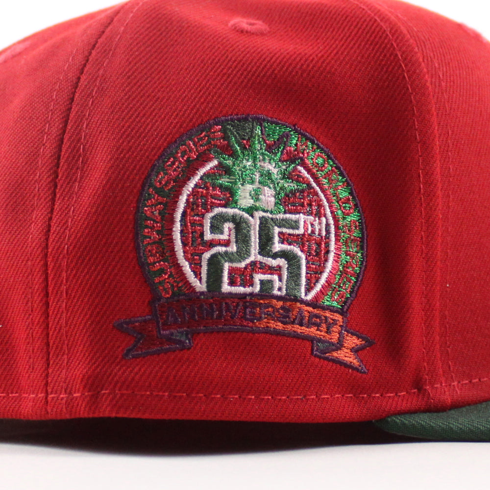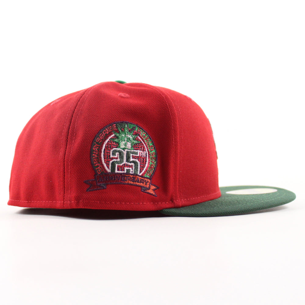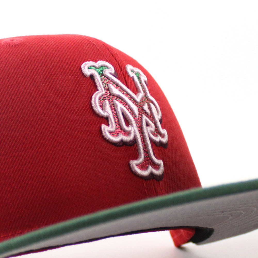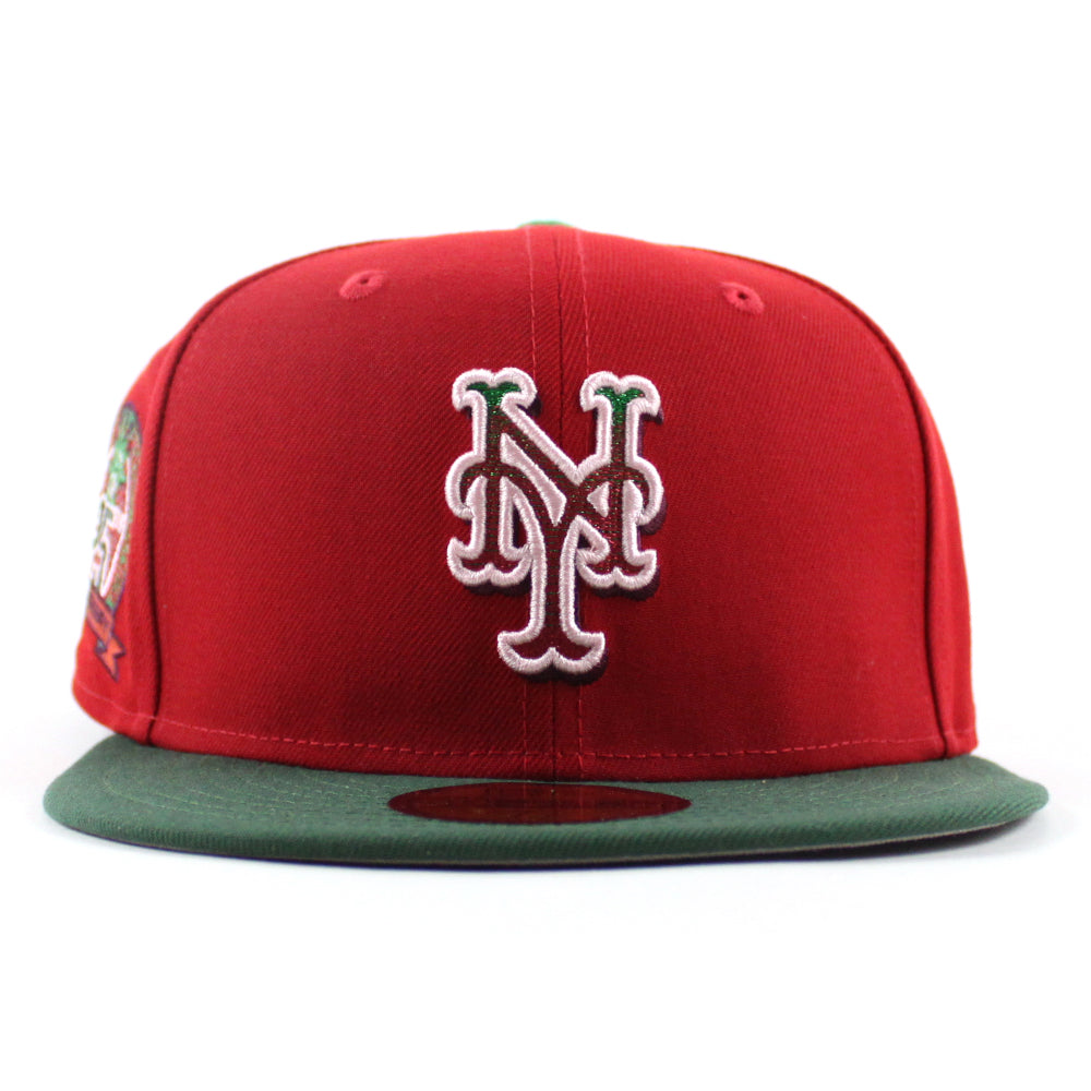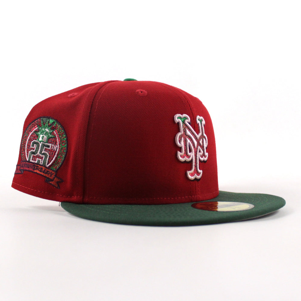 New York Mets 25th Anniversary New Era Fitted Hat in Scarlet Red, Cilantro Green and Gray Under Brim.