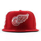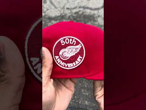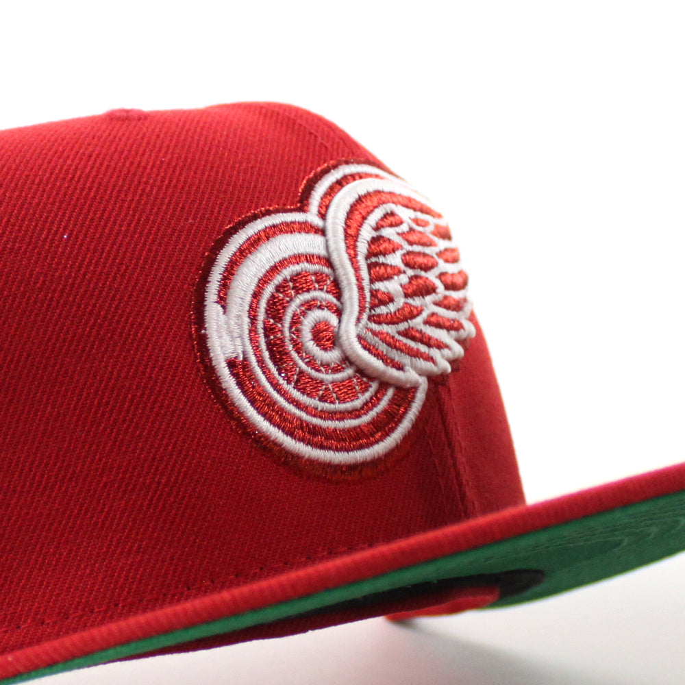 Detroit Red Wings 50th Anniversary New Era 59Fifty Fitted Hat in Scarlet Red with Green Under brim.