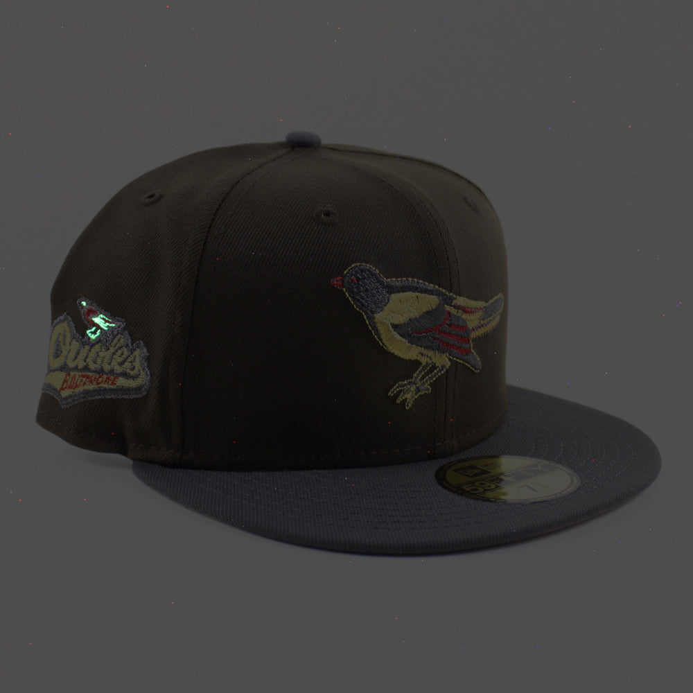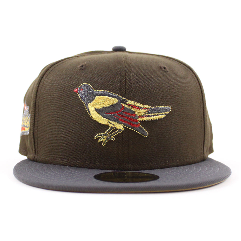 Baltimore Orioles 1992 - 1994 59Fifty New Era Fitted Hat (Walnut Graphite Khaki Under Brim)