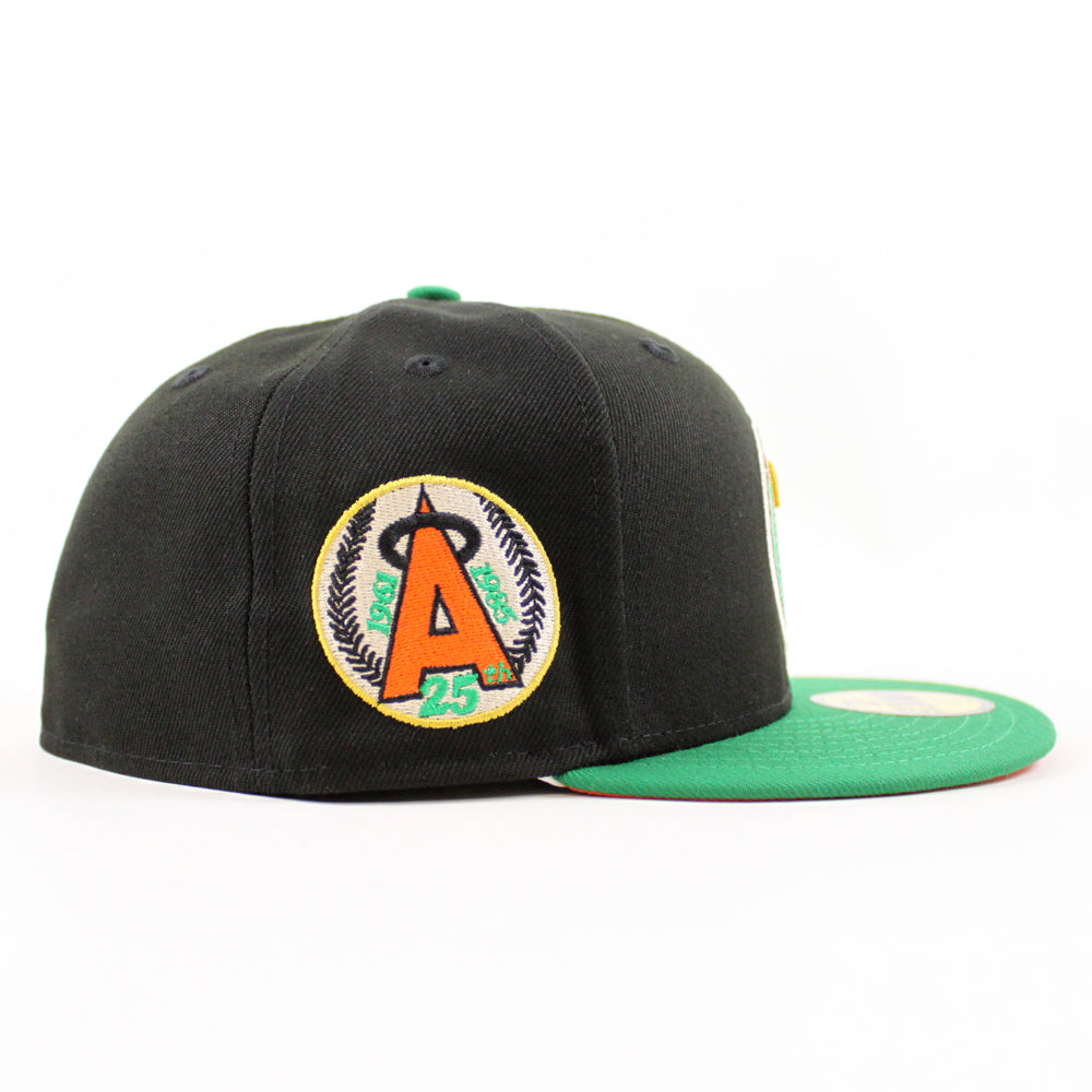 California Angels 25th Anniversary New Era 59Fifty Fitted Hat in Black, Kelly and Orange Under Brim