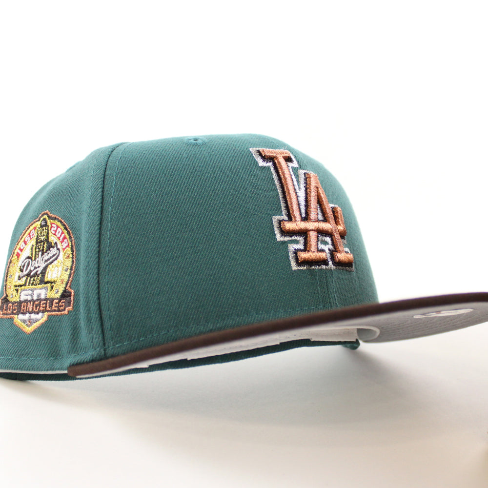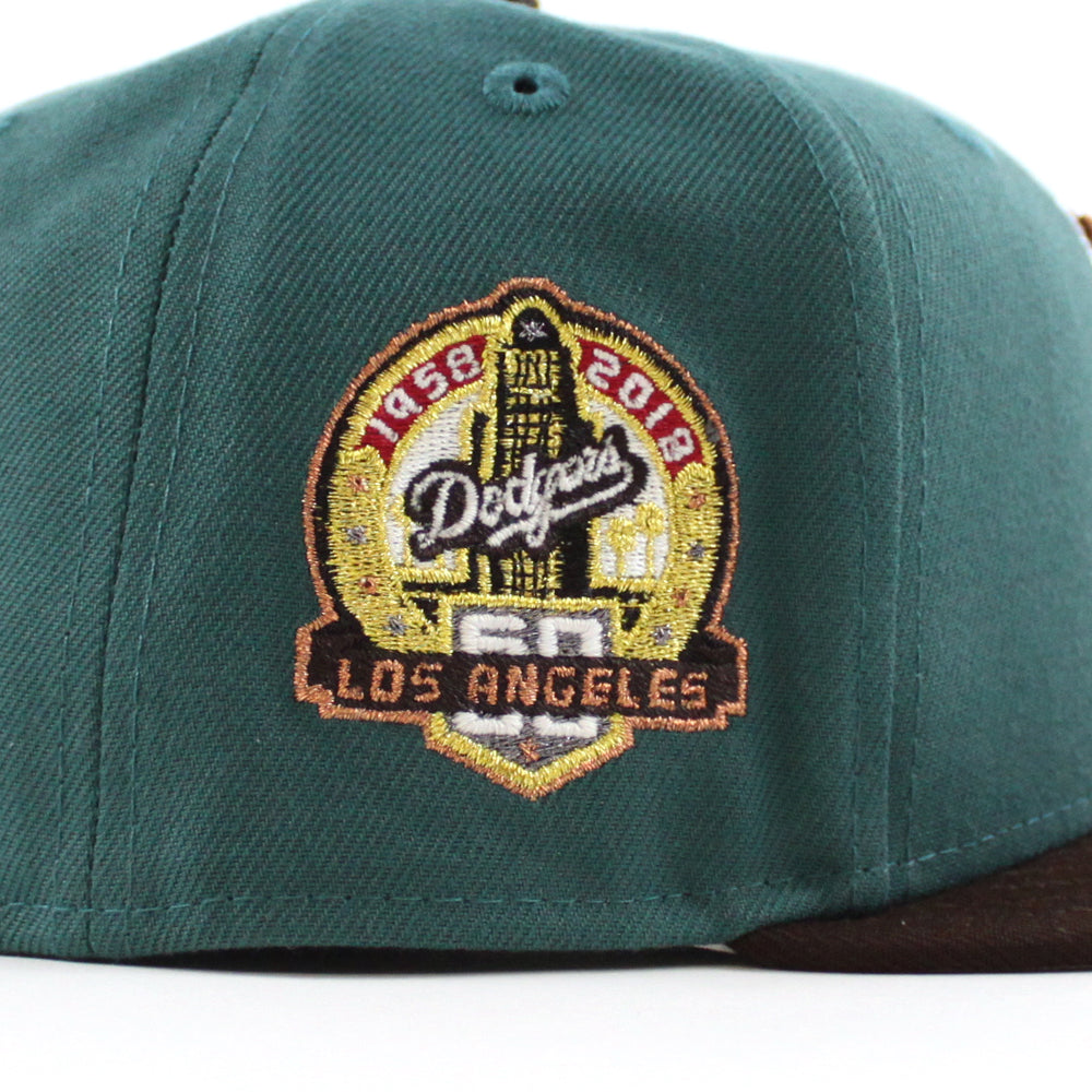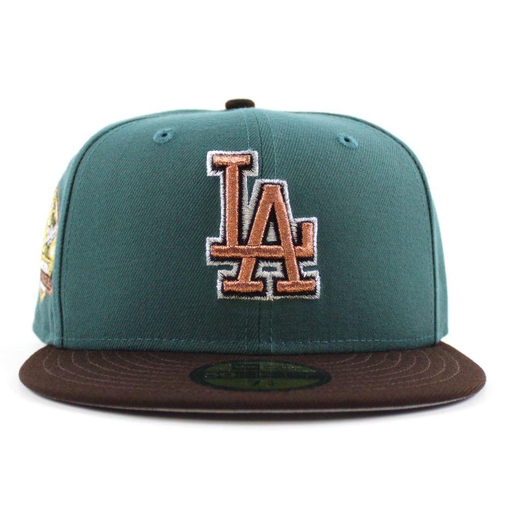 Los Angeles Dodgers 50th Anniversary DODGERS STADIUM New Era 59Fifty Fitted Hat in Needle Green, BurntWood and Gray Under Brim.