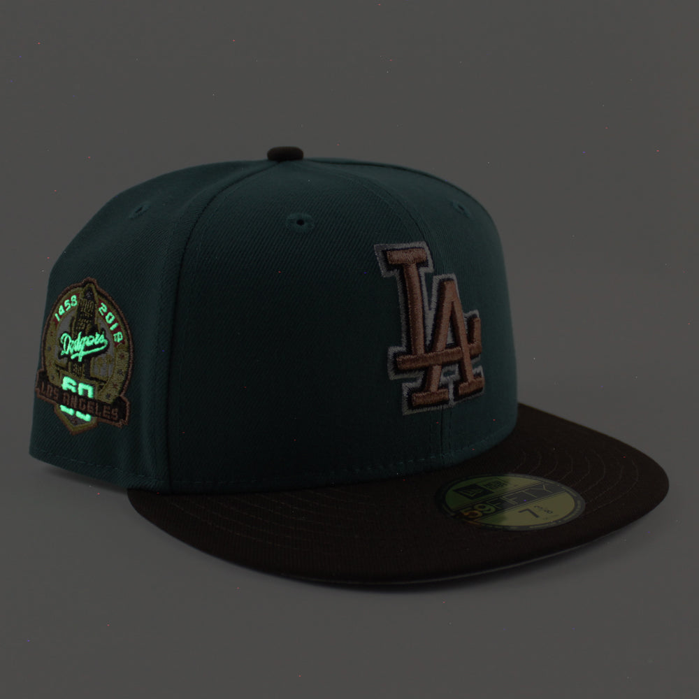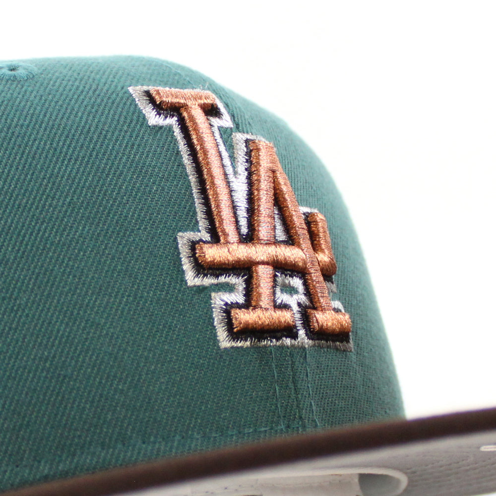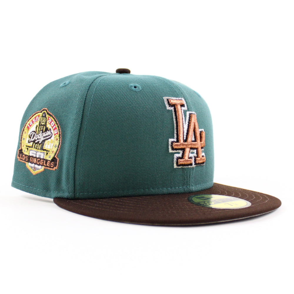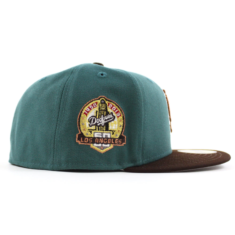 Los Angeles Dodgers 50th Anniversary DODGERS STADIUM New Era 59Fifty Fitted Hat in Needle Green, BurntWood and Gray Under Brim.