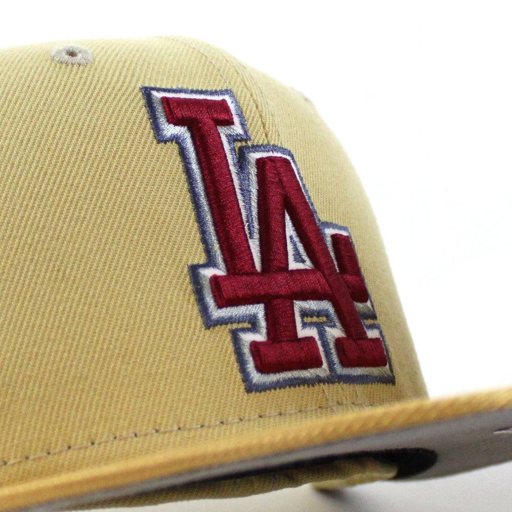 Los Angeles Dodgers 60TH Dodger Stadium New Era 59Fifty Fitted Hat in Vegas Gold, Metallic Gold, and Gray Under Brim. 16