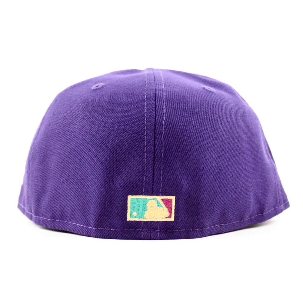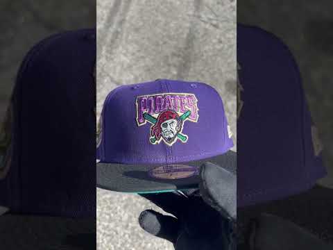 Pittsburgh Pirates Three Rivers Stadium 59Fifty New Era Fitted Cap in Purple, Black, and Aqua Under Brim.
